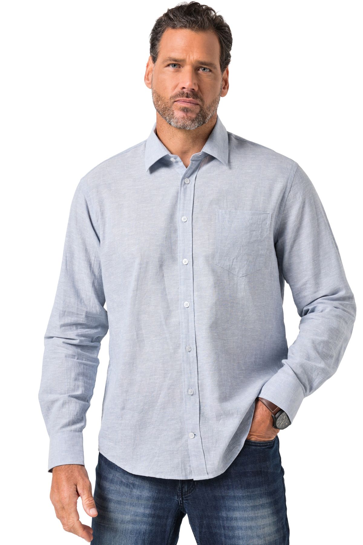 Coupe spéciale jusqu'au 8 XL, Lin mélangé, agréablement frais sur la peau (thermorégulateur), Coupe Modern Fit, Col Kent, Boutons plus grands à partir du 4 XL, Long. selon taille env. 78-92 cm.