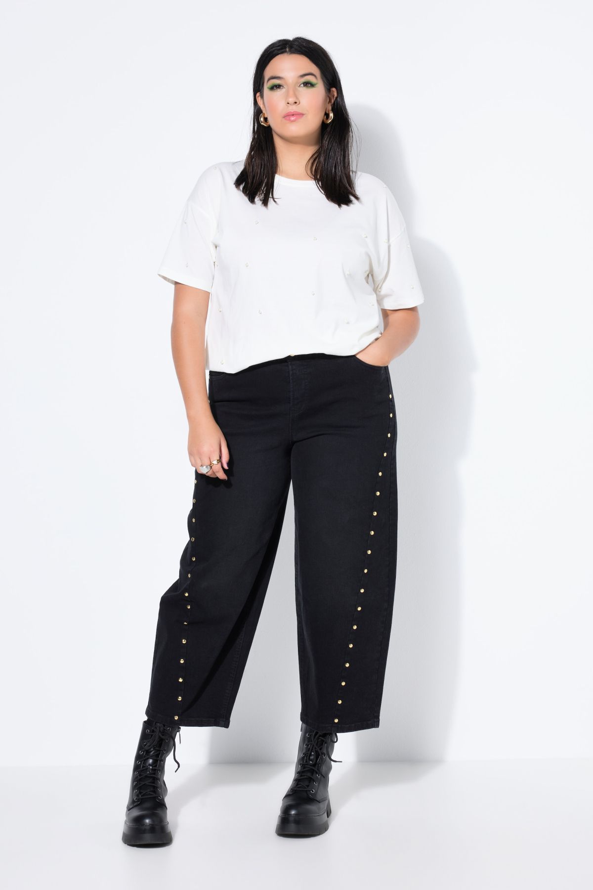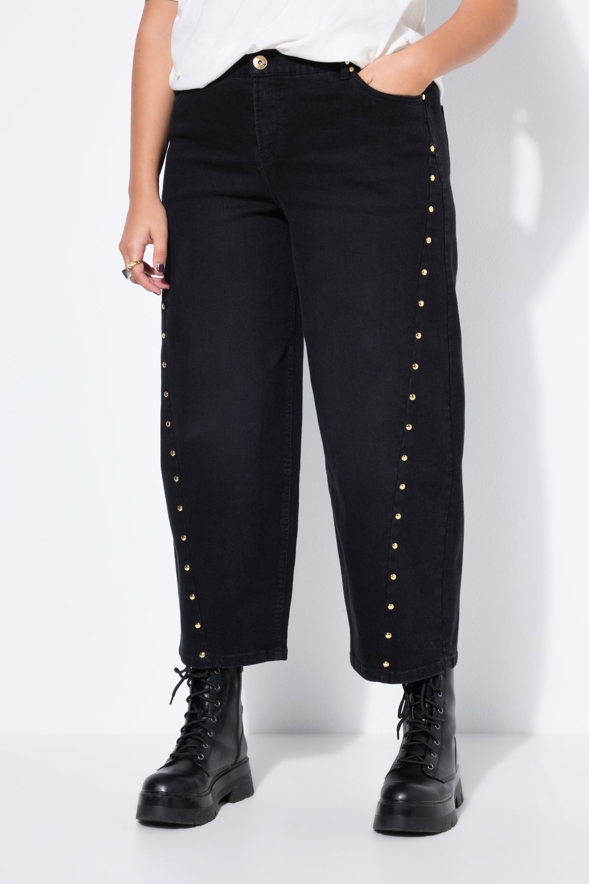Jean Barrel avec rivets fantaisie, jambe ballon et taille haute