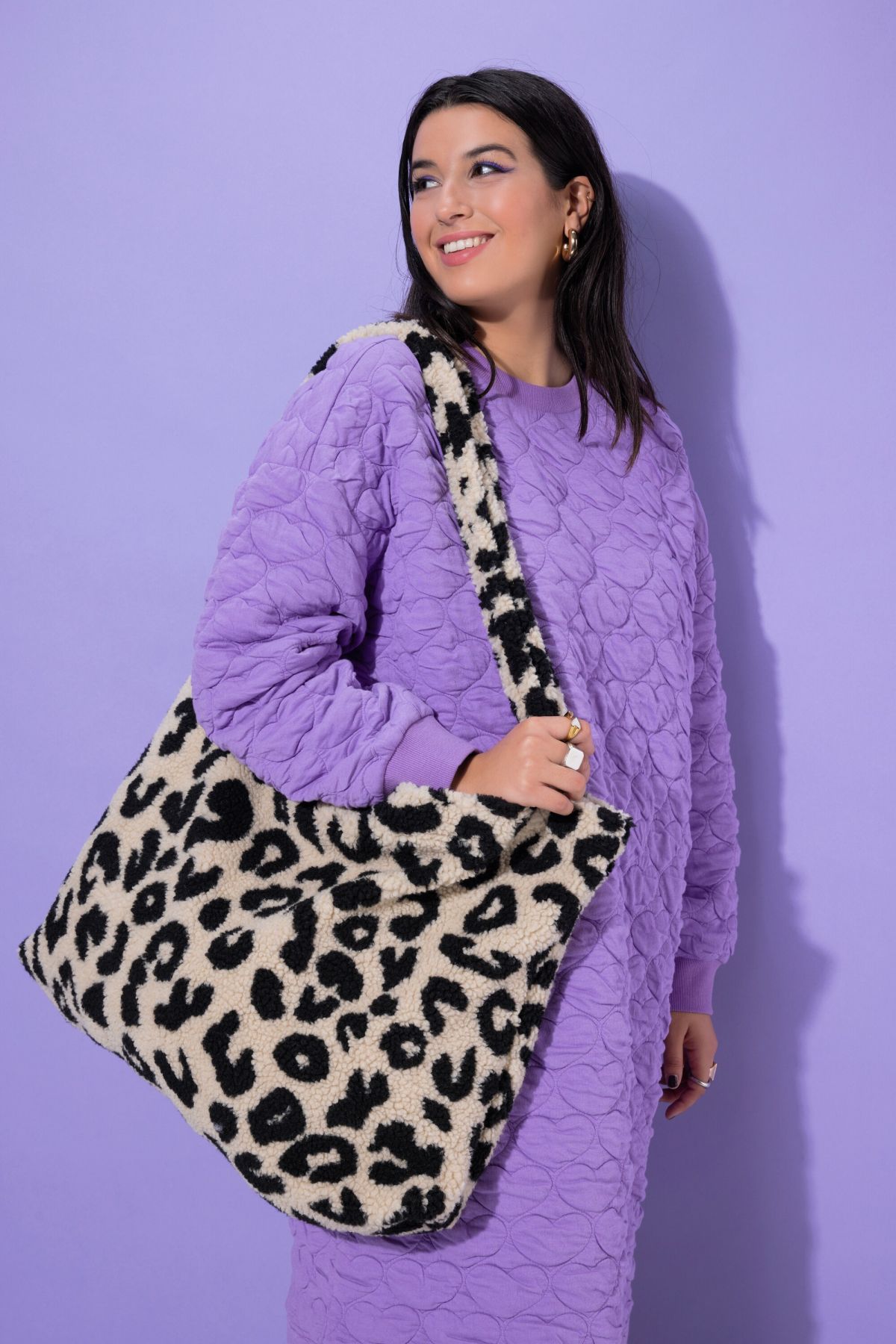Sac shopper en polaire bouclée, motif léopard