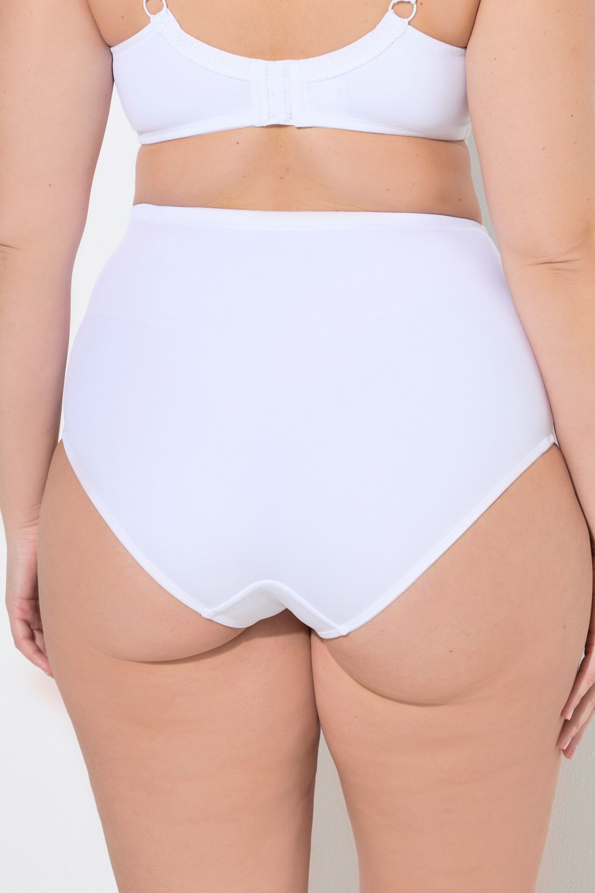 Culotte gainante, taille haute, à fine dentelle jacquard. Sculpte le corps de façon invisible.