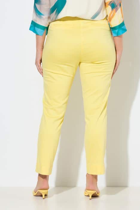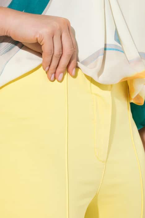 Plis fantaisie surpiqués, Jambe slim, Taille élastique confortable, Courtes fentes au bas des jambes, Braguette zippée et bouton, Entrej. env. 72