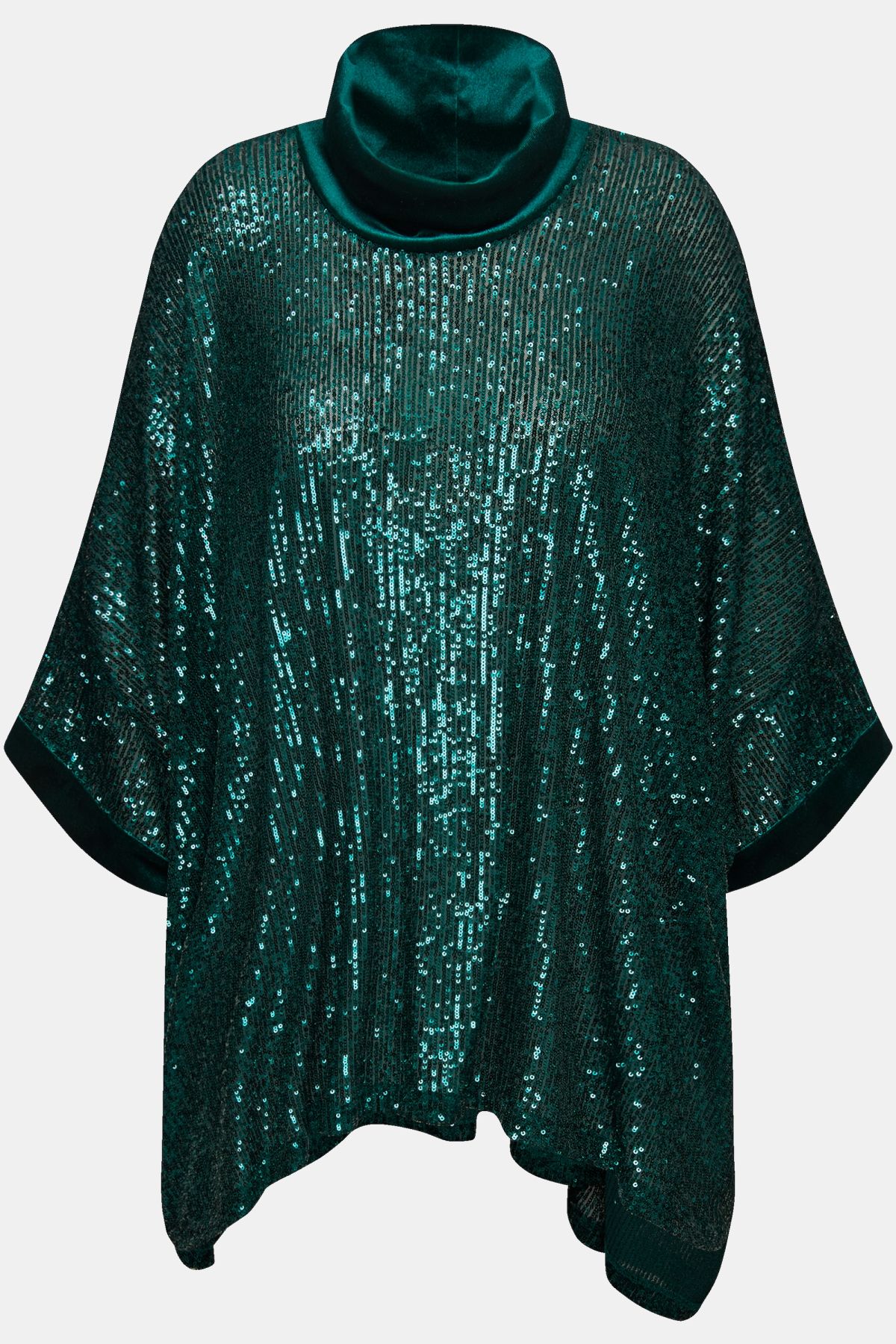Tissu légèrement transparent, habillé de paillettes scintillantes, Col roulé large et évasé, Coupe oversized décontractée, Manches courtes ourlées de velours doux, Long. env. 68-79