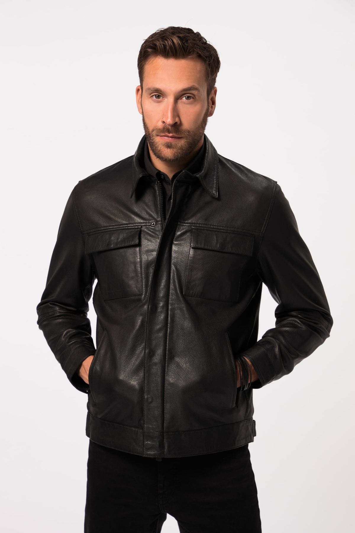 cuir d'agneau nappa de grande qualité, sélectionné avec soin, Col chemise, Fermeture zippée dissimulée, poches très pratiques, Poches intérieures, Long. entrej. env. 70-84