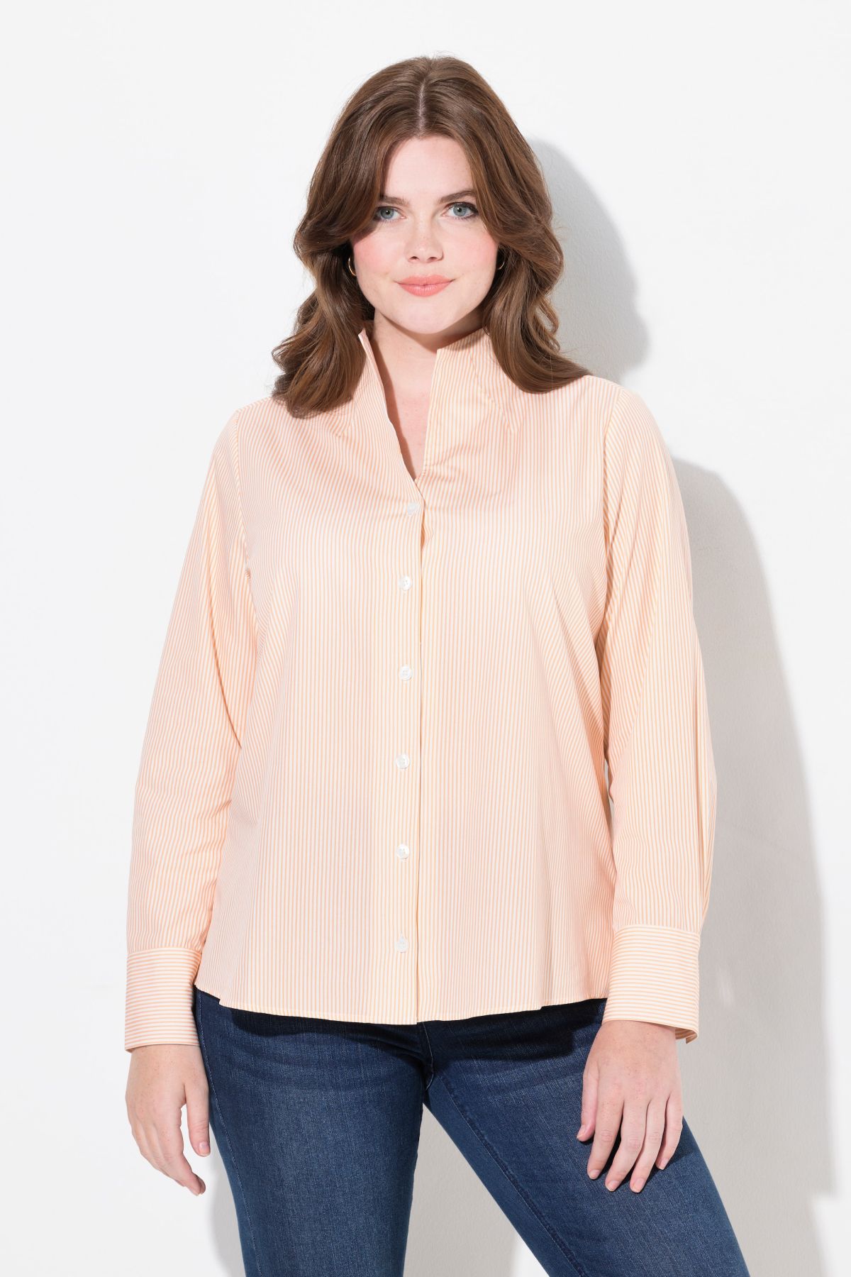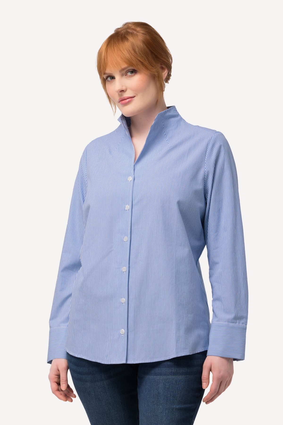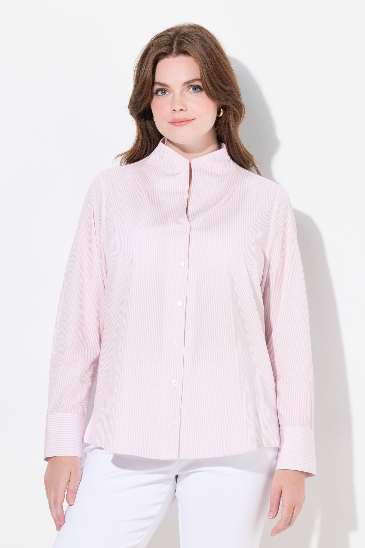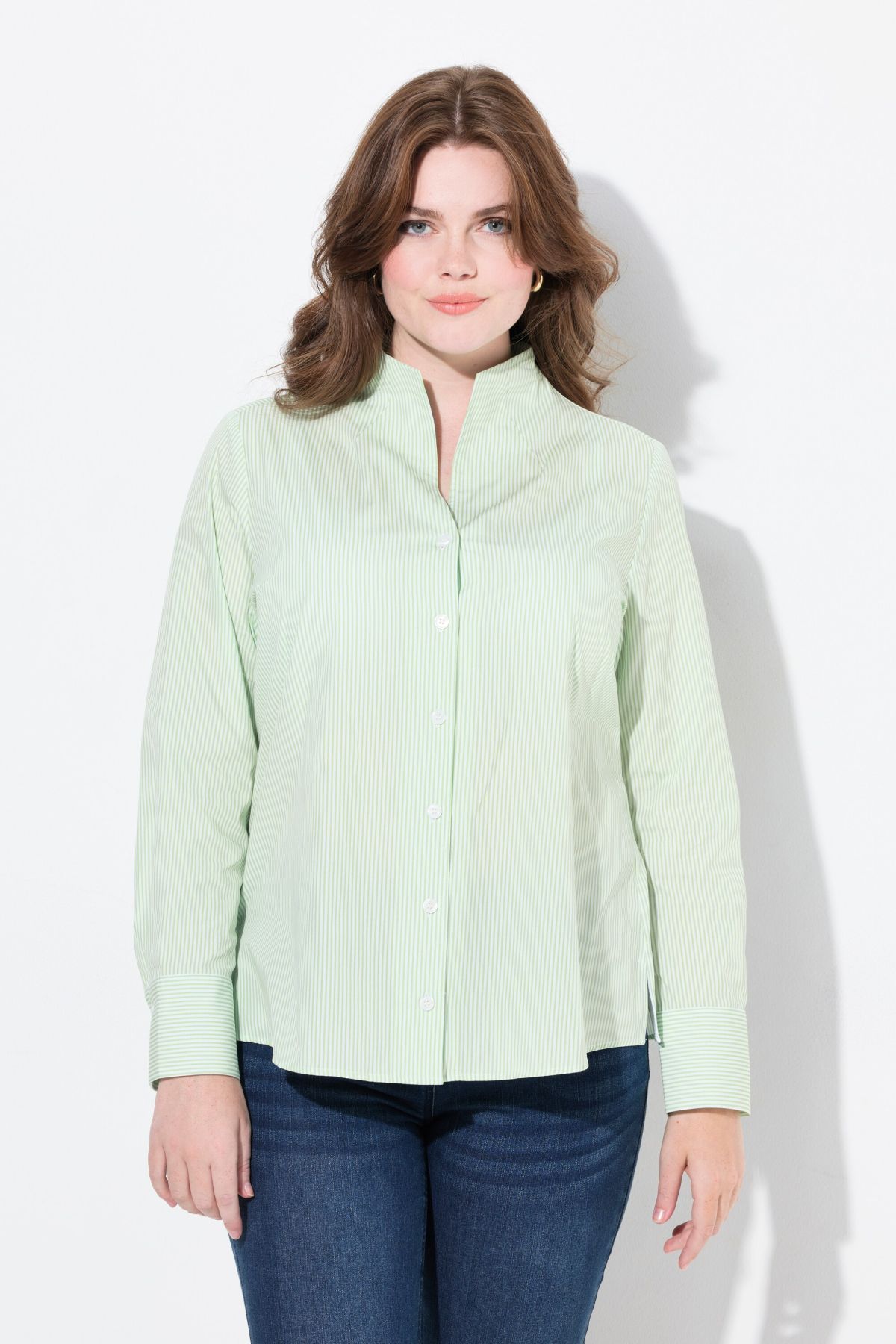 Motif à rayures intemporel, Col calice féminin, Fente sur les côtés pour une plus grande liberté de mouvement, Manches longues à manchettes, Pur coton, Long. entrej. env. 68-76