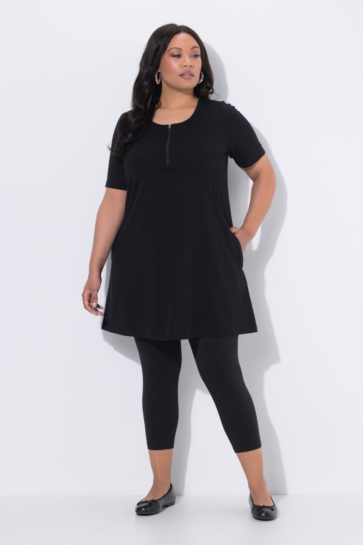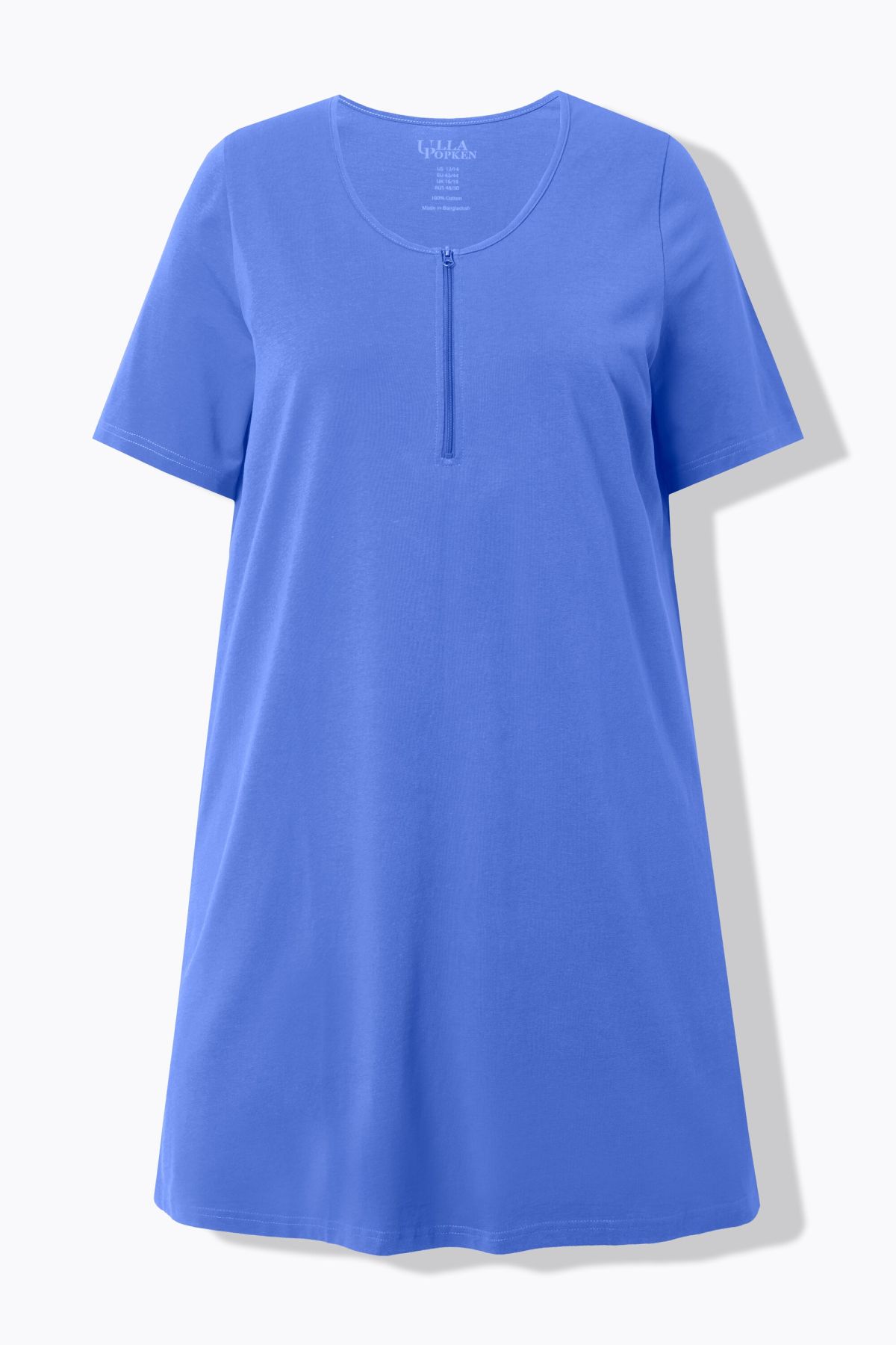 Fermeture zippée tendance, Décolleté rond, Coupe évasée longue et confortable, Manches courtes, Pur coton, Long. env. 91