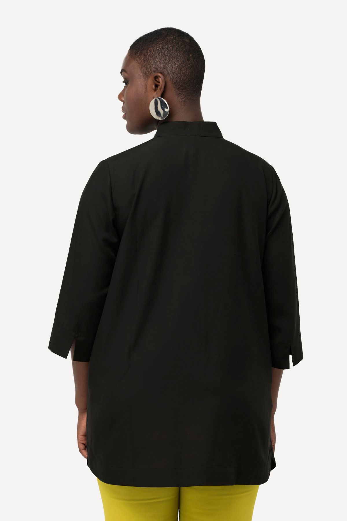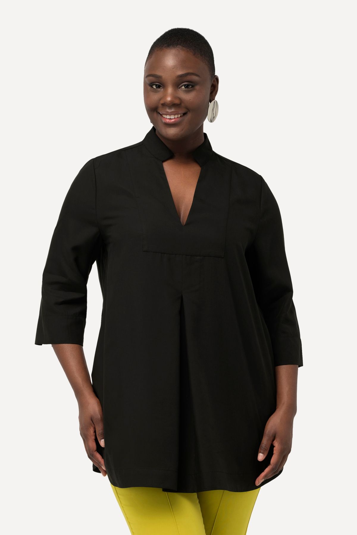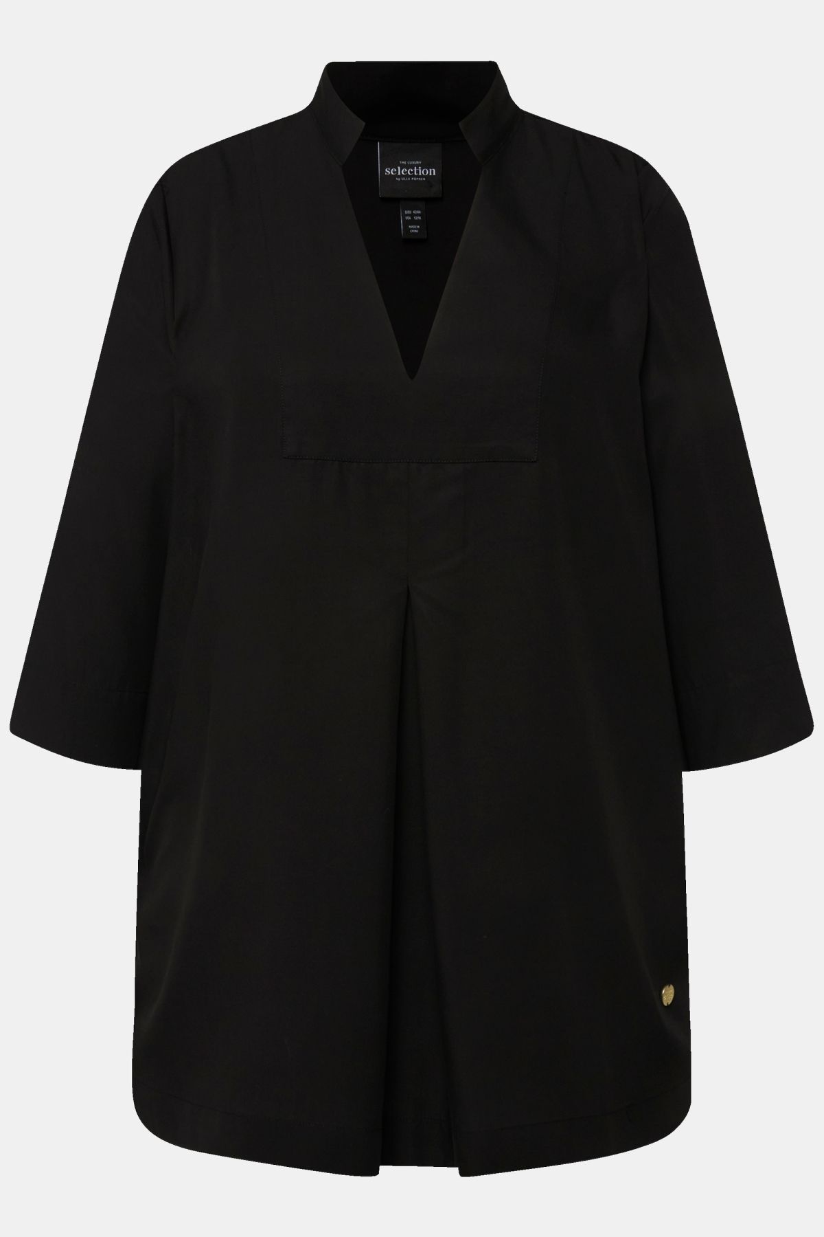 Col montant et encolure en V, Jolis plis creux en dessous, Base arrondie avec ouvertures de type fentes se chevauchant sur les côtés, Manches 3/4 fendues, Lyocell doux et confortable, Long. selon taille env. 80-84 cm.