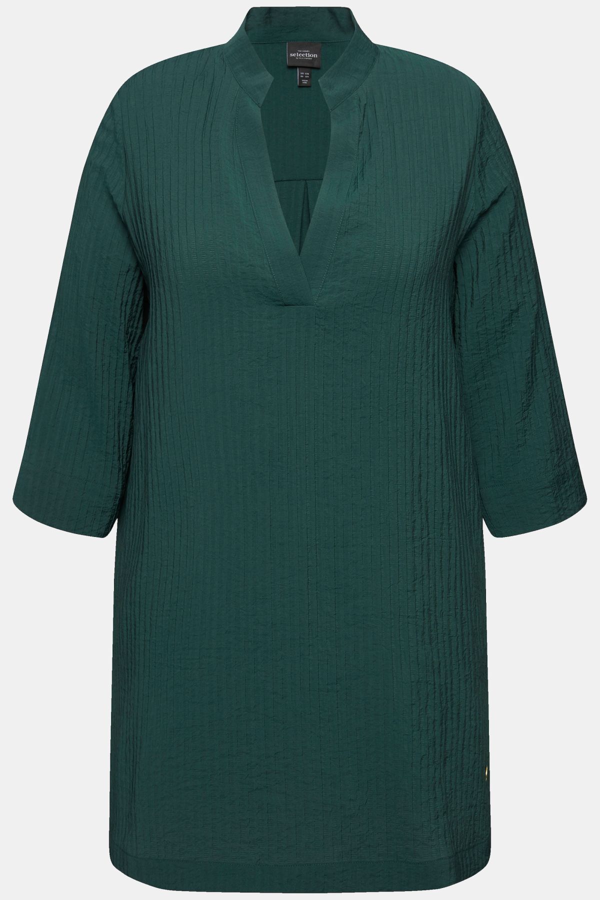 Blouse encolure en V, col montant et manches 3/4, fines rayures
