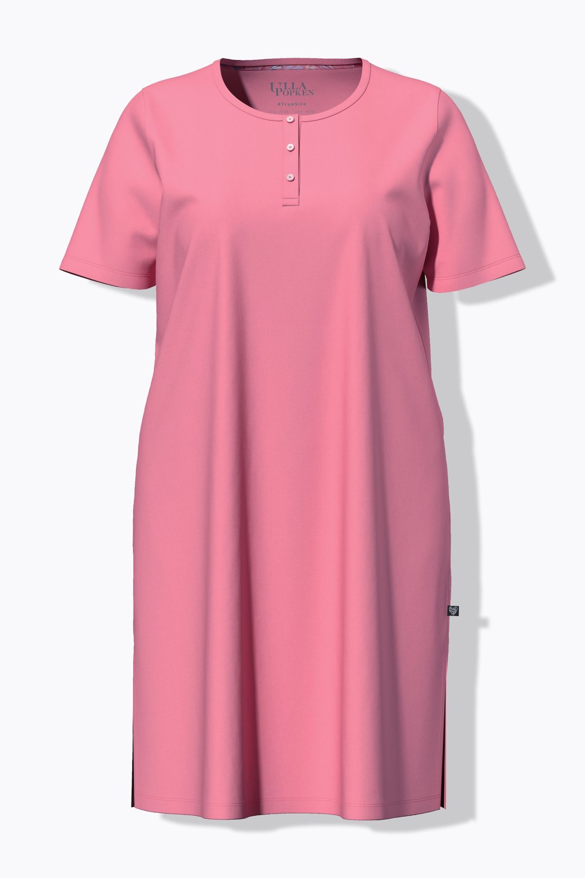 1x motif floral, 1x uni, Décolleté rond avec patte de boutonnage, Coupe évasée confortable avec fentes sur les côtés, Manches courtes, Coton respirant, idéal pour la nuit, Long. env. 100-105