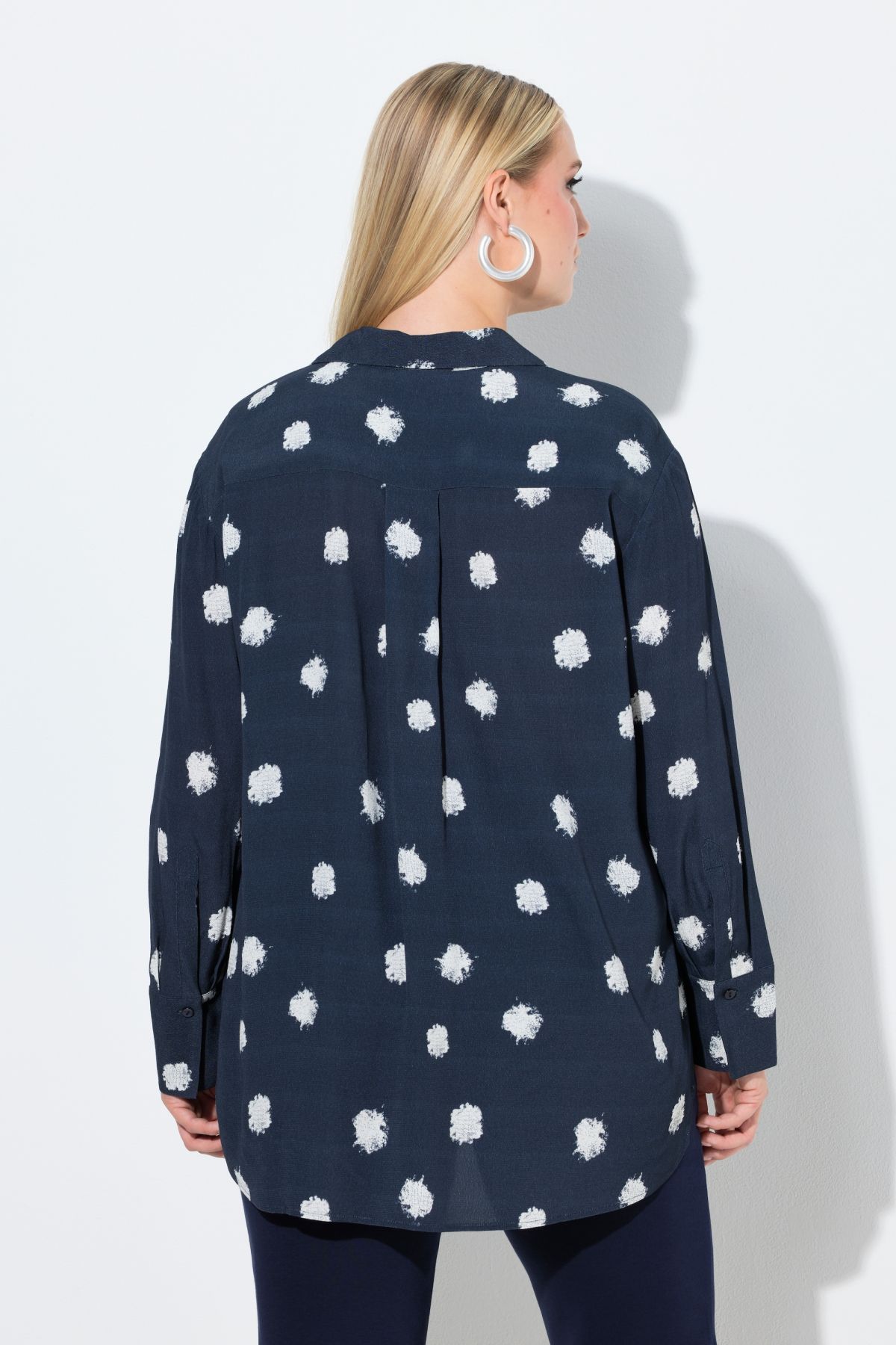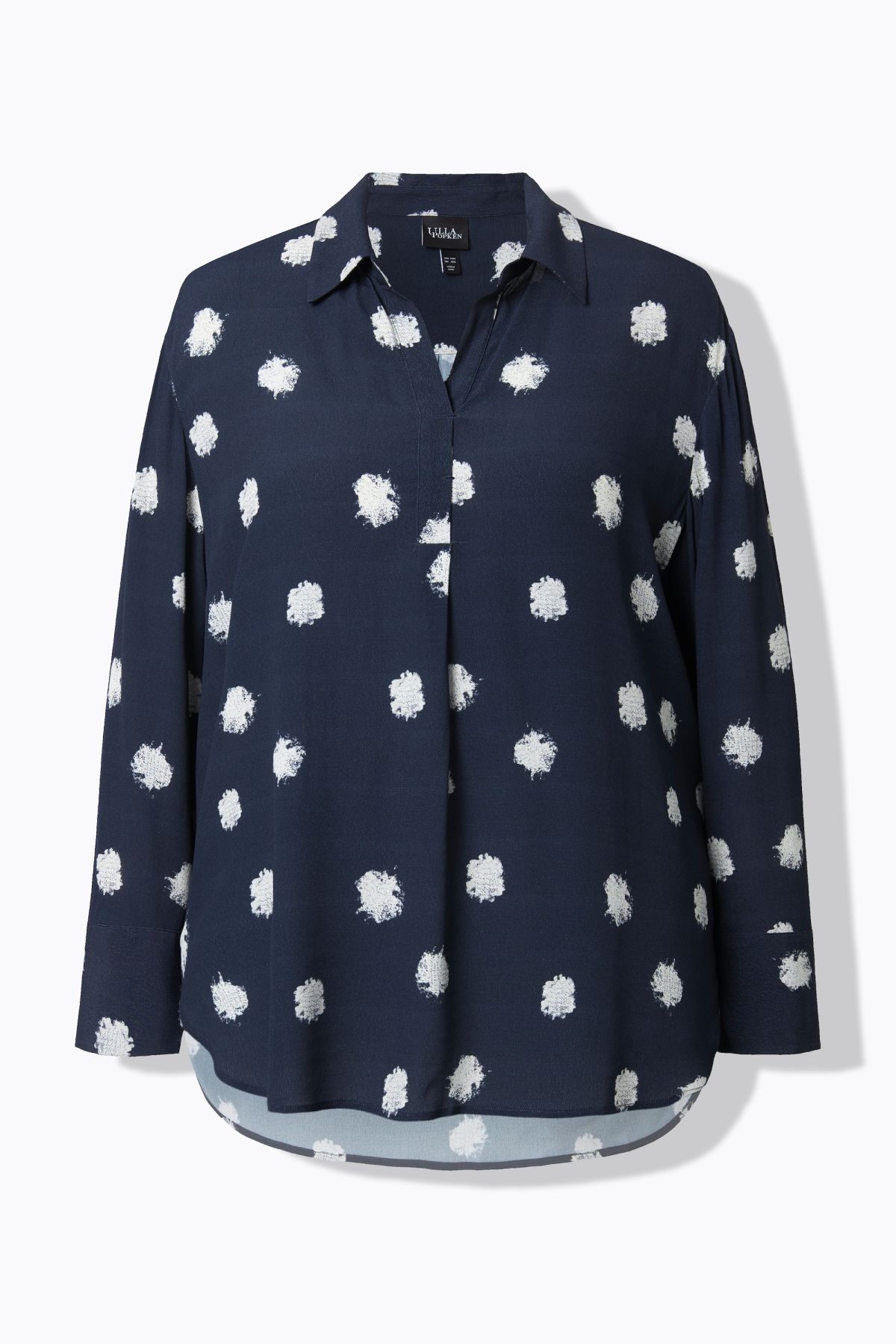 Tunique à pois, col chemise et plis fantaisie, manches longues