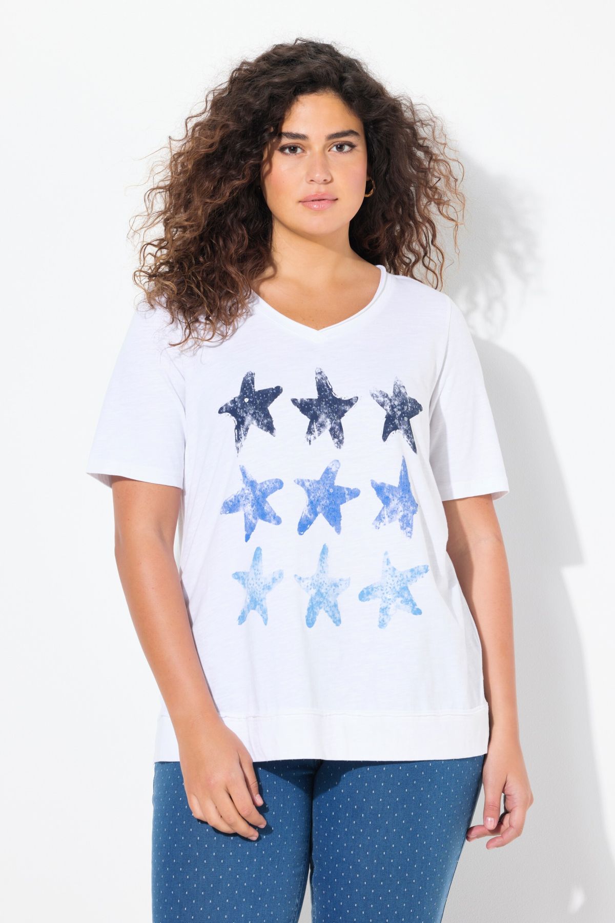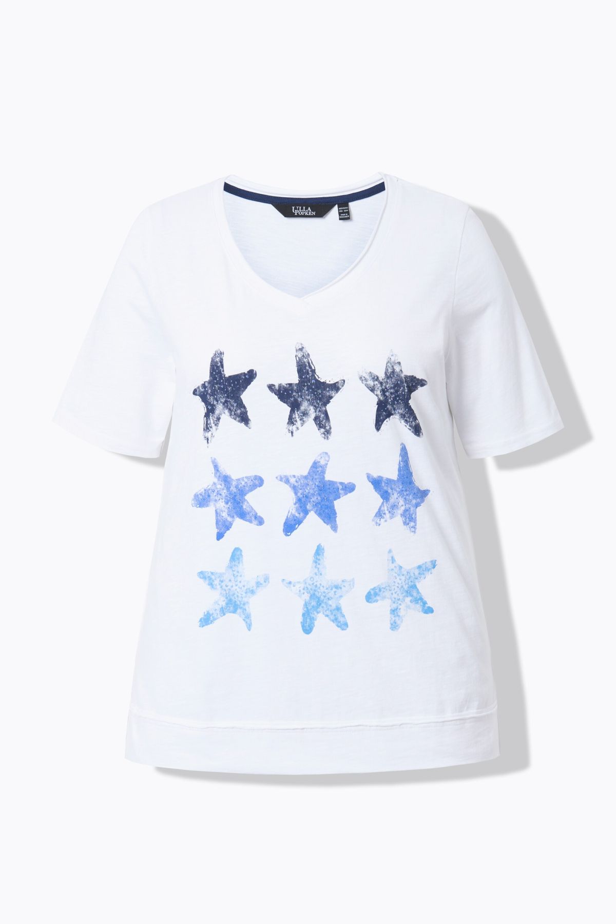 Motif étoiles de mer, bords francs, Col en V, Coupe Classic, Fentes sur les côtés pour davantage de liberté de mouvement, Jersey flammé doux et confortable, en pur coton, Long. entrej. env. 68-76