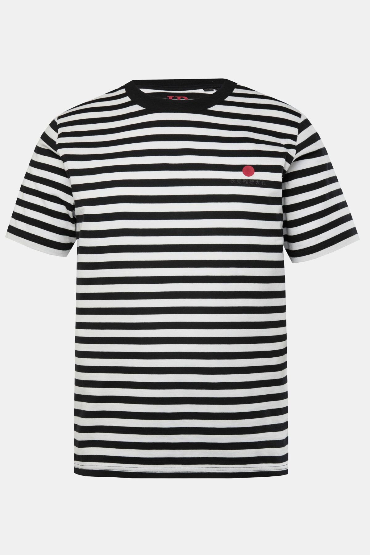 Coupe spéciale jusqu'au 8 XL, Jersey rayé, à la fois doux et confortable, Imprimé sur la poitrine, Manches courtes, Long. entrej. env. 74-86 cm.