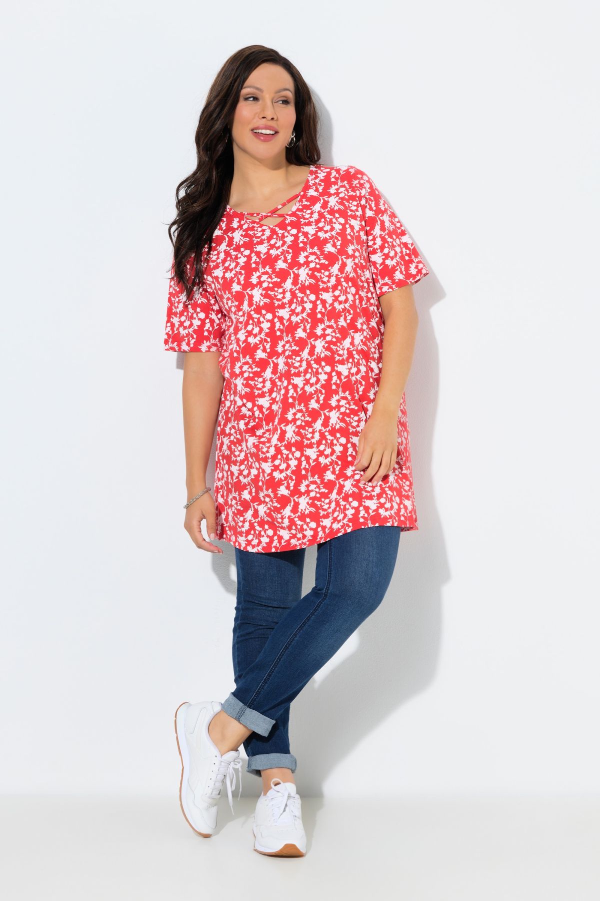 T-shirt manches courtes, col en V avec petits cordons fantaisie