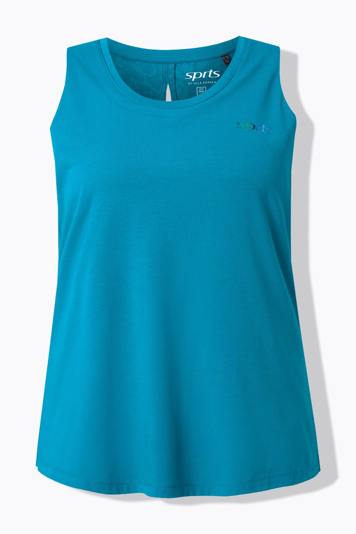 Brassière intégrée - idéale pour le sport et les séances d'entraînement, Col rond, Fente dans le haut du dos, empiècement coloré en tissu dévoré, Coupe évasée, base légèrement arrondie et plus longue dans le dos, Matière respirante, séchant rapidement, Lo