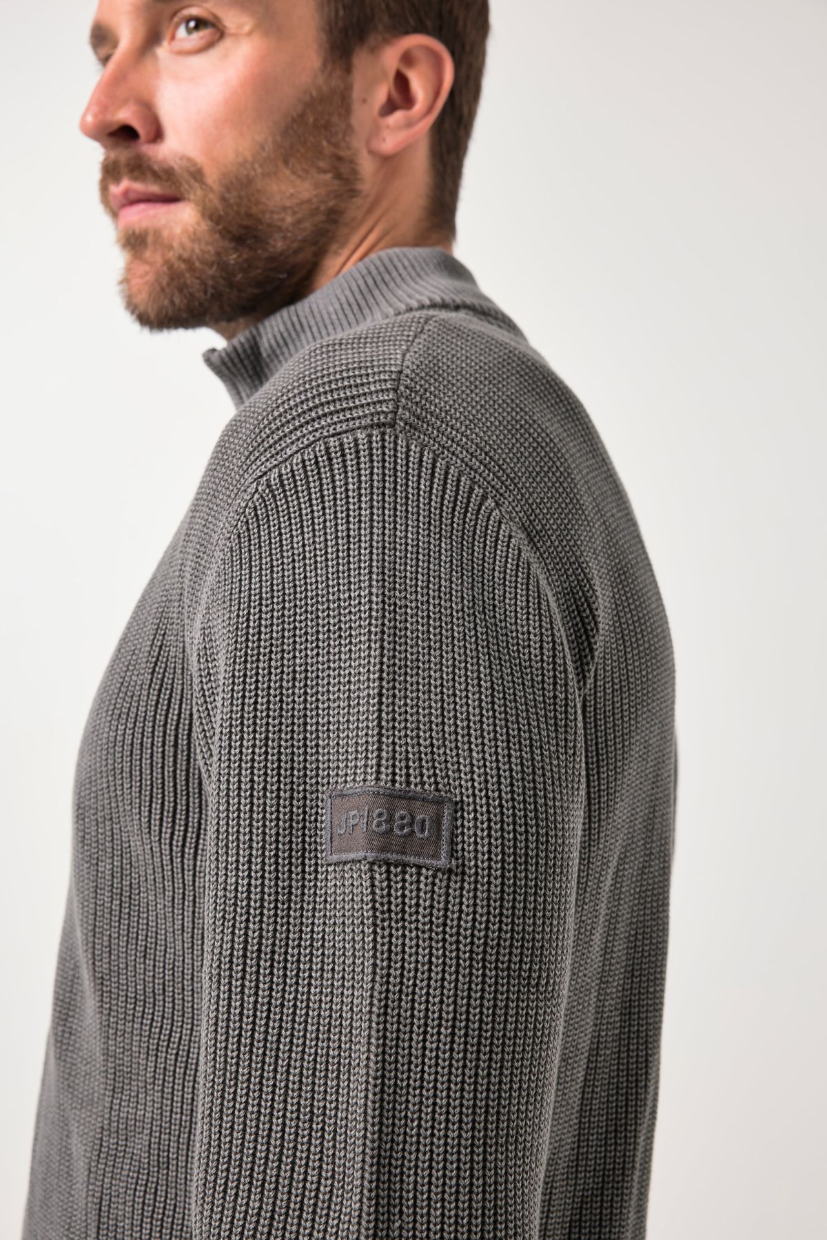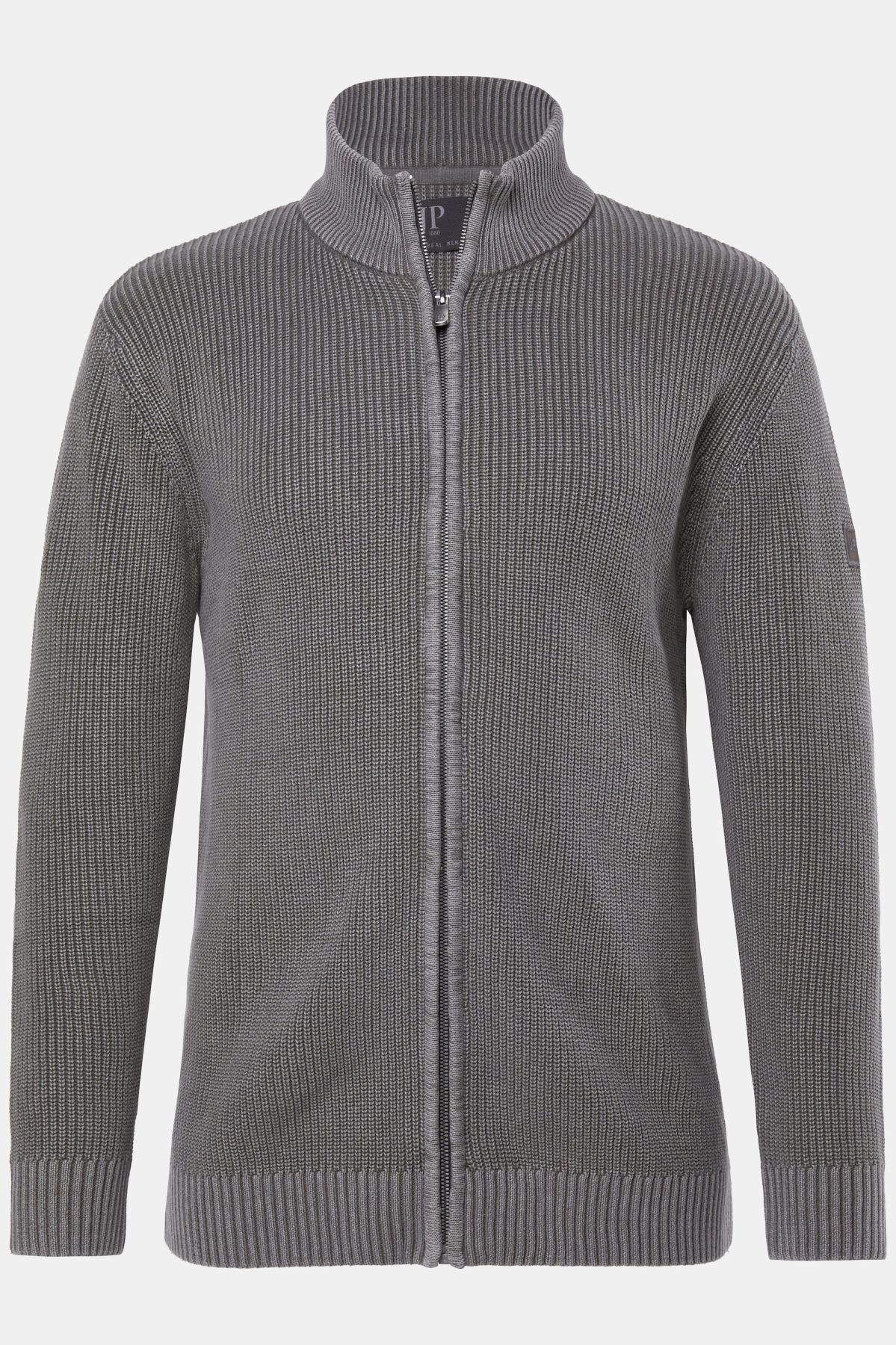 Coupe spéciale jusqu'au 7 XL, Maille en coton tendance, Style vintage - délavage acid washed, Col montant, Fermeture zippée, Long. selon taille env. 74-85 cm.