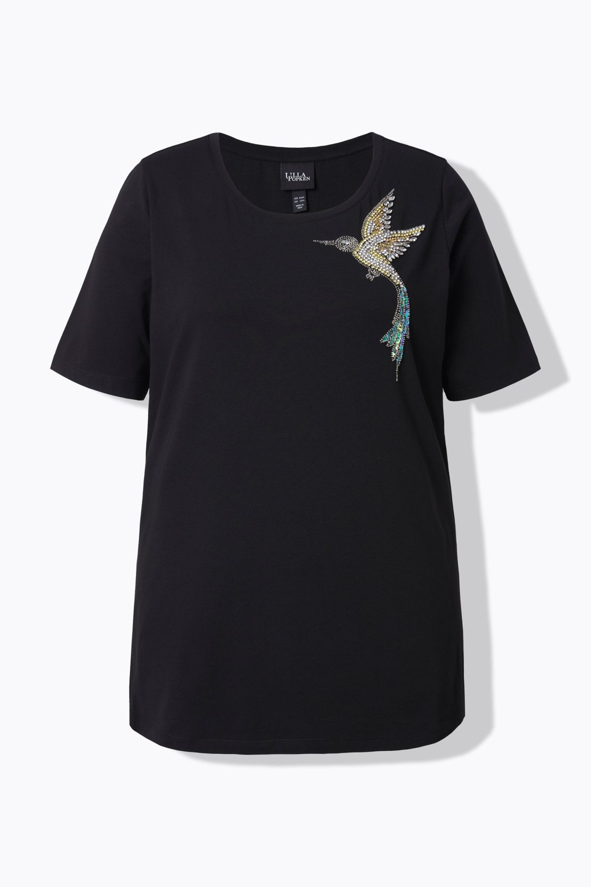 Élégant colibri brodé, avec paillettes et petites pierres fantaisie, Col rond, Coupe Classic Fit, fente de chaque côté, Manches courtes, Jersey de coton agréablement élastique, Long. selon taille env. 72-76 cm.