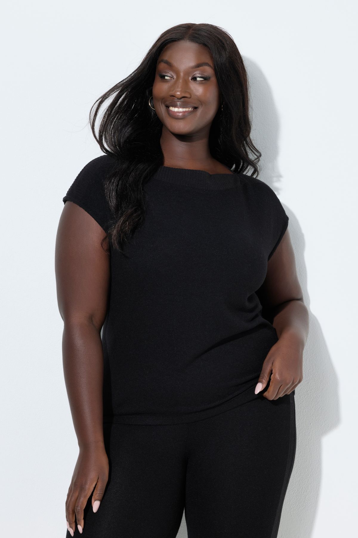 Jersey côtelé au niveau des épaules et autour de l'encolure, Encolure bateau, Modèle oversize décontracté, Épaules basses, Base élastique, Long. selon taille env. 61-69 cm.