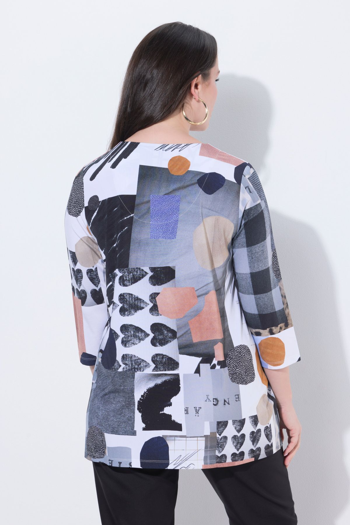 Motif graphique avec cœurs, Décolleté en V, Coupe évasée, base ample et confortable, Manches 3/4, Tissu doux et raffiné, au tombé fluide, Long. selon taille env. 72-76 cm.