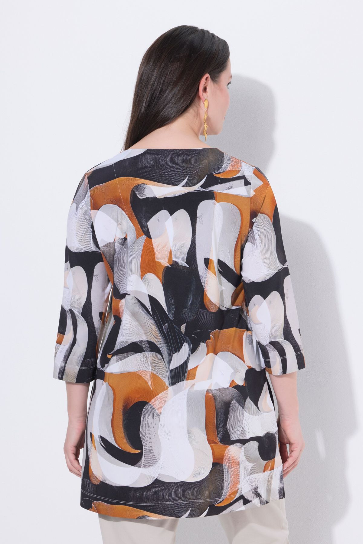 Motif graphique, Col tunisien avec pli fantaisie, Coupe Classic Fit, plus longue que la normale, Manches 3/4, Tissu doux et raffiné, au tombé fluide, Long. selon taille env. 82-86 cm.