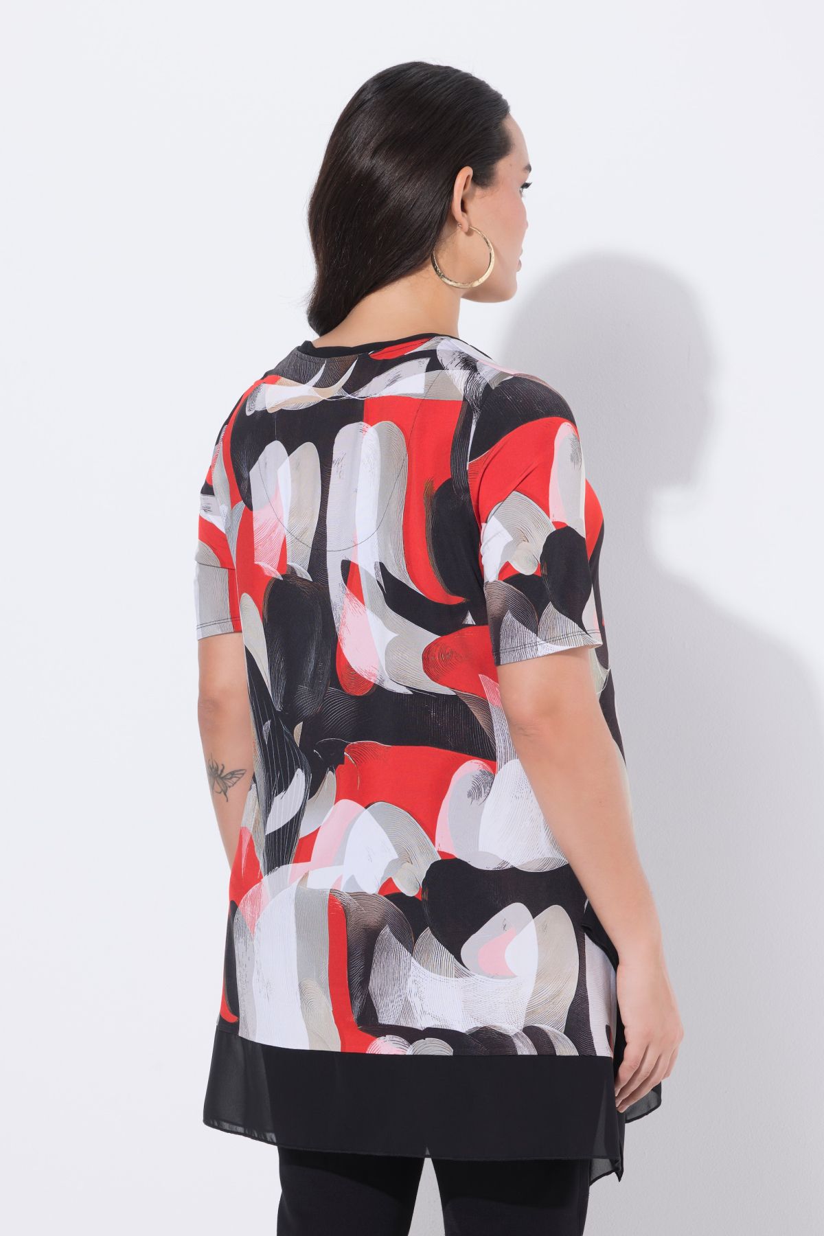 Motif graphique tendance, Liseré fantaisie en mousseline tout autour du décolleté en V, Coupe Classic Fit, base extrêmement large, Mousseline raffinée à la base, fente de chaque côté, Tissu doux et raffiné, au tombé fluide, Long. selon taille env. 80-84 c