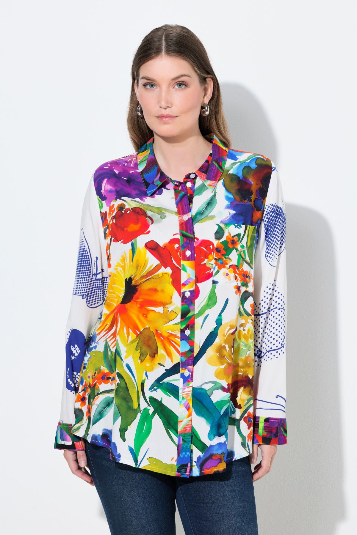 Chemisier à manches longues et col chemise, jeu d'imprimés