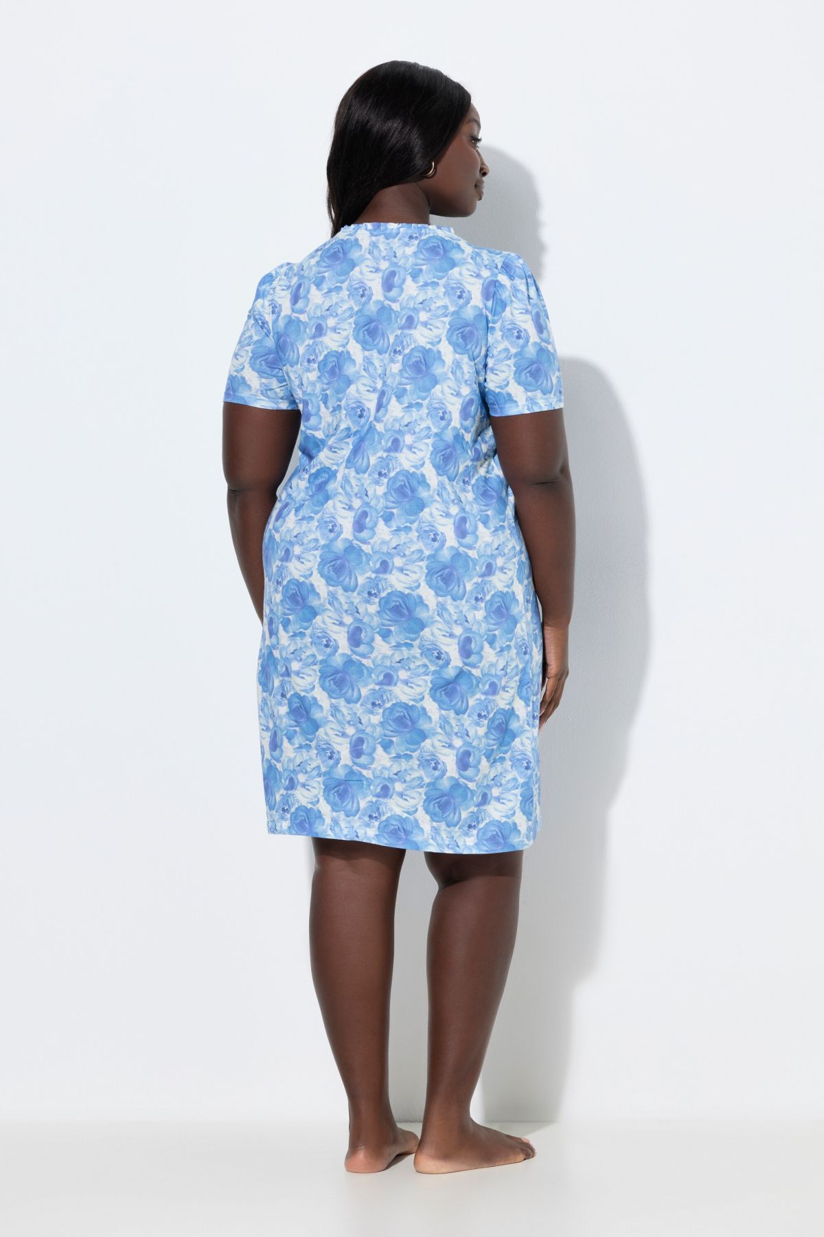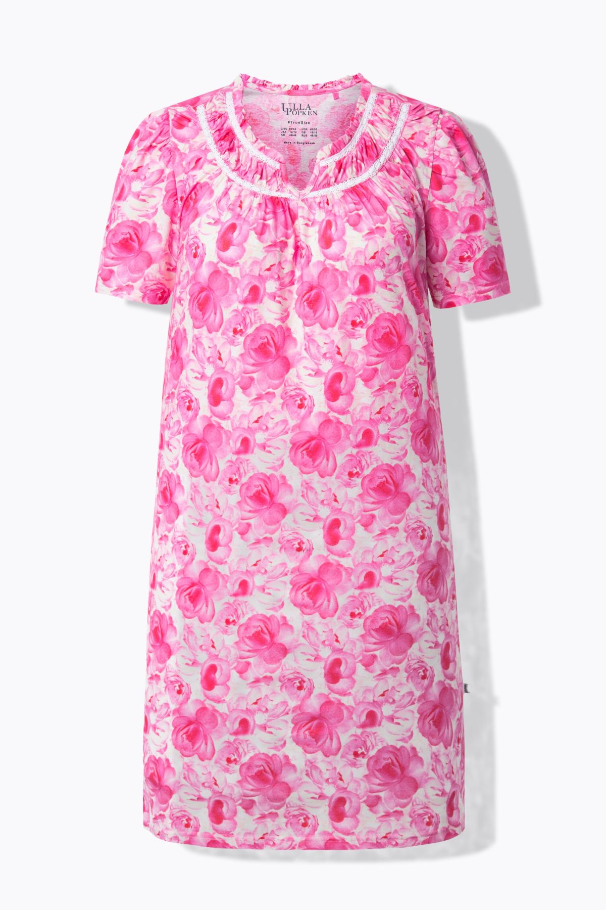 Chemise de nuit motif rose, décolleté rond et manches courtes