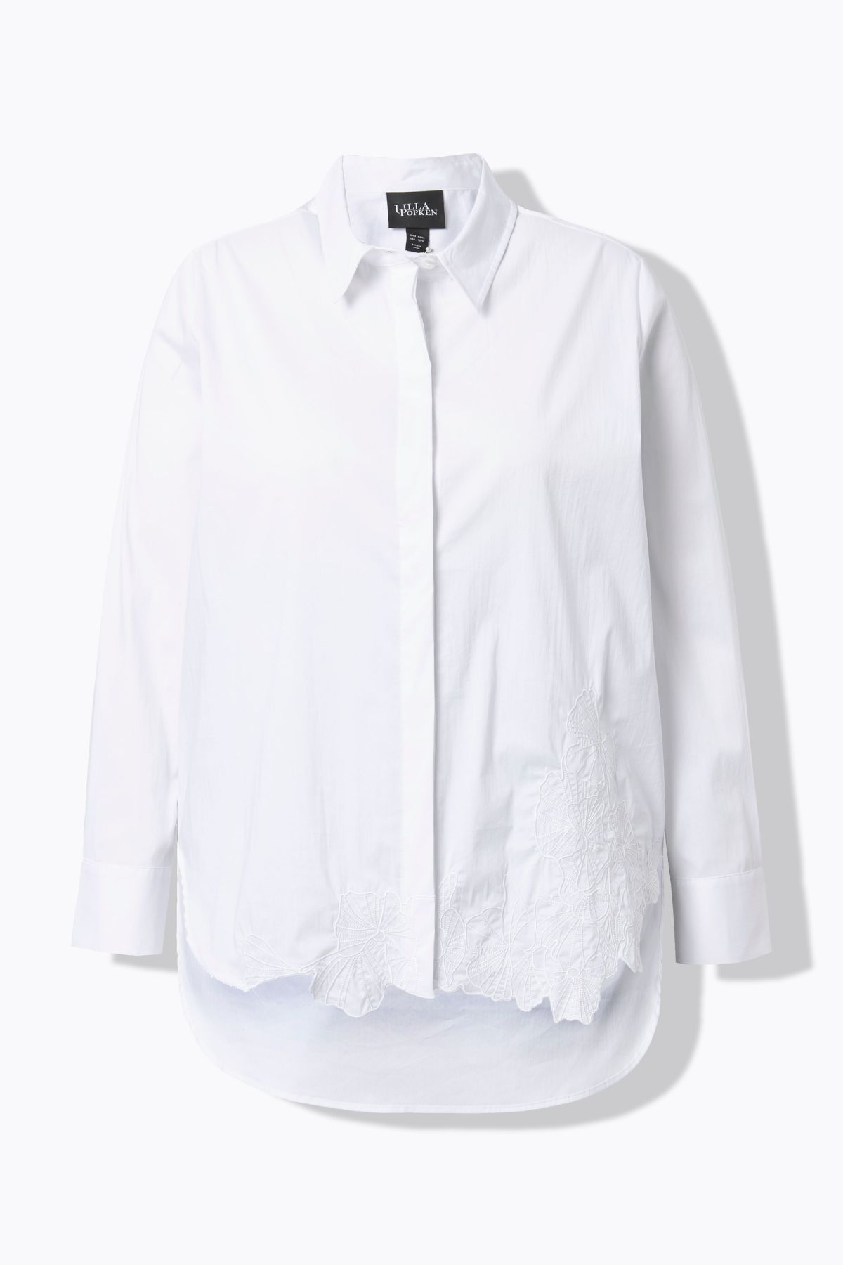 Chemisier avec fleurs brodées, col chemise et manches longues