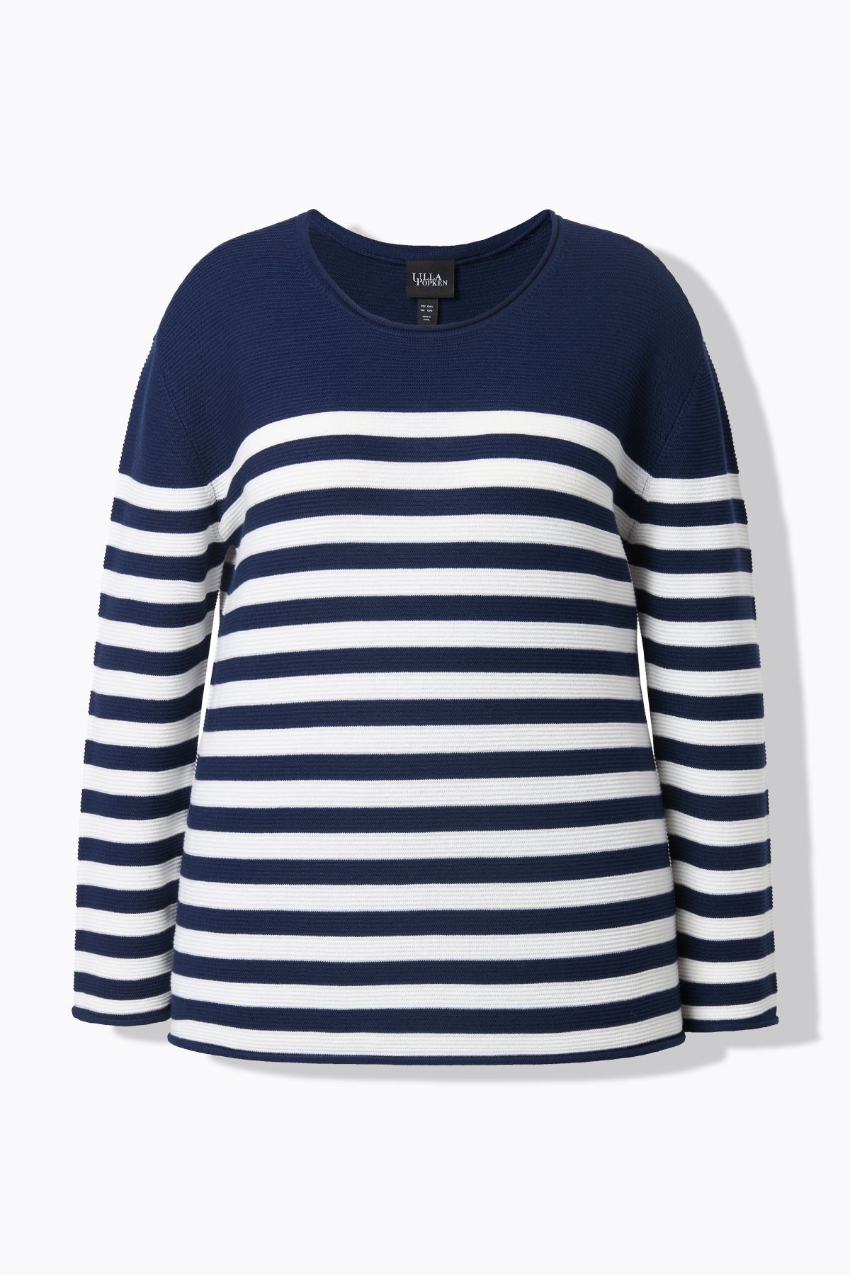 Pull col rond et manches longues, bords roulottés, rayures esprit marinière