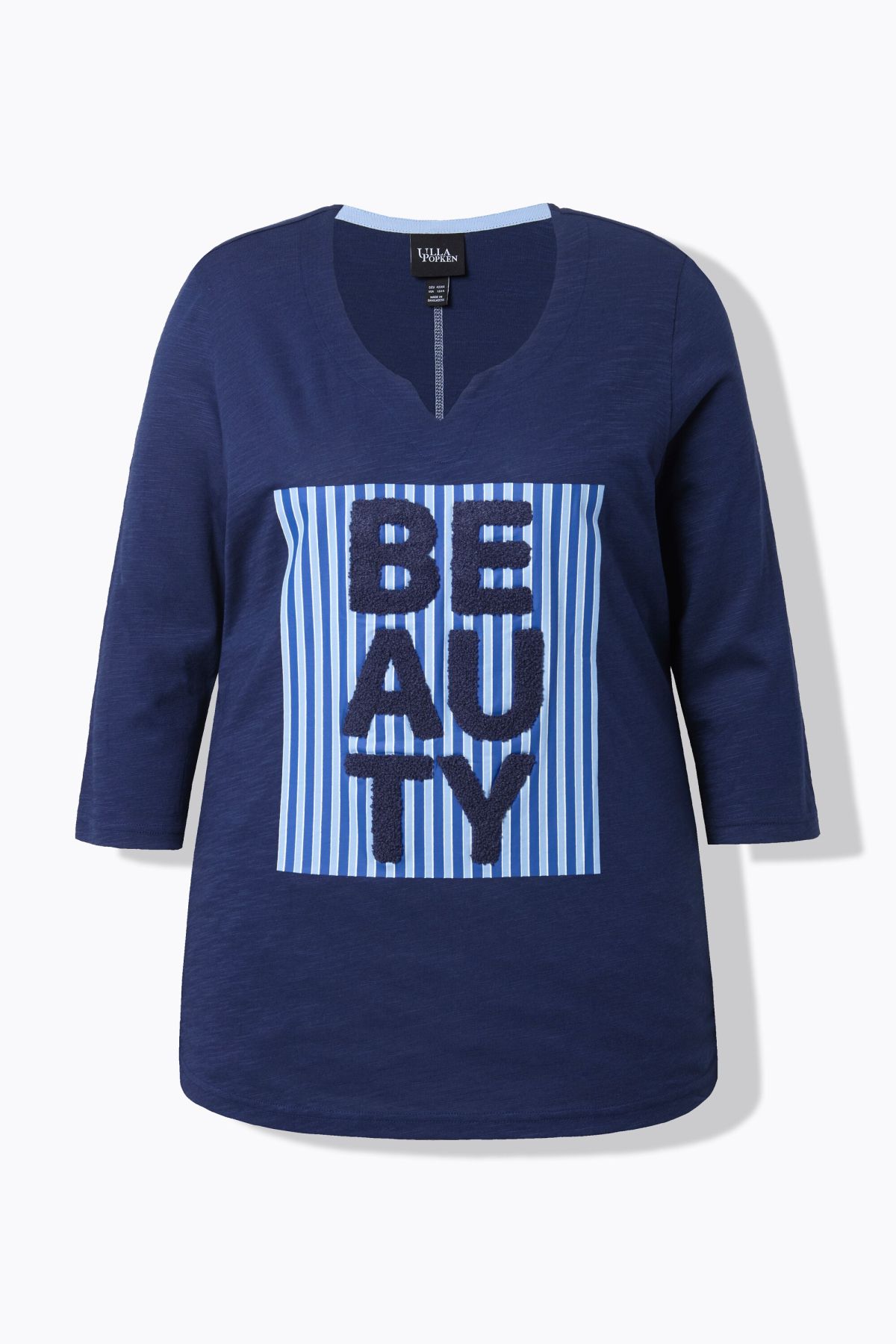 Motif « Beauty » en grandes lettres floquées, Décolleté en V arrondi, Coupe Classic Fit, Manches 3/4, Mélange modal-coton d'une très grande douceur, Long. selon taille env. 72-76 cm.