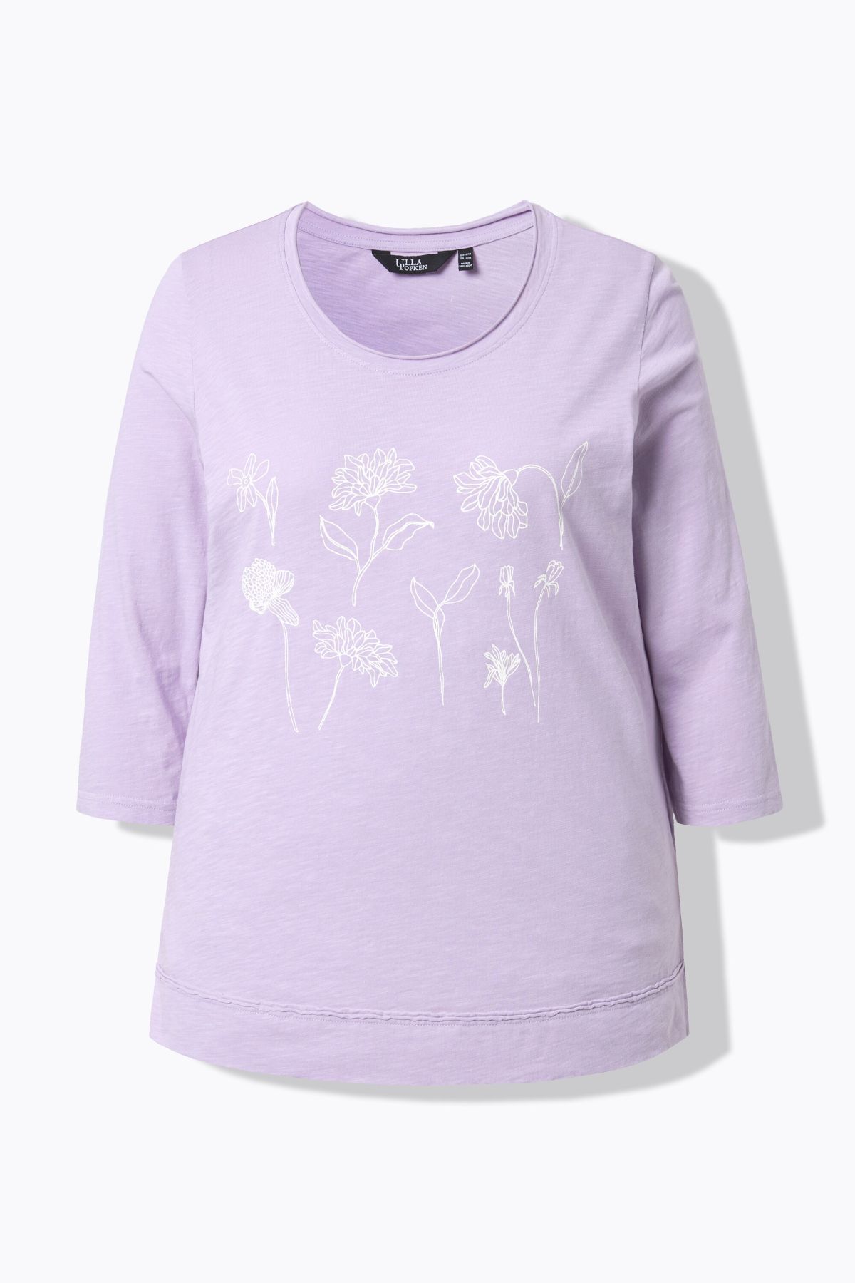 T-shirt motif à fleurs, coupe Classic Fit, col rond et manches 3/4