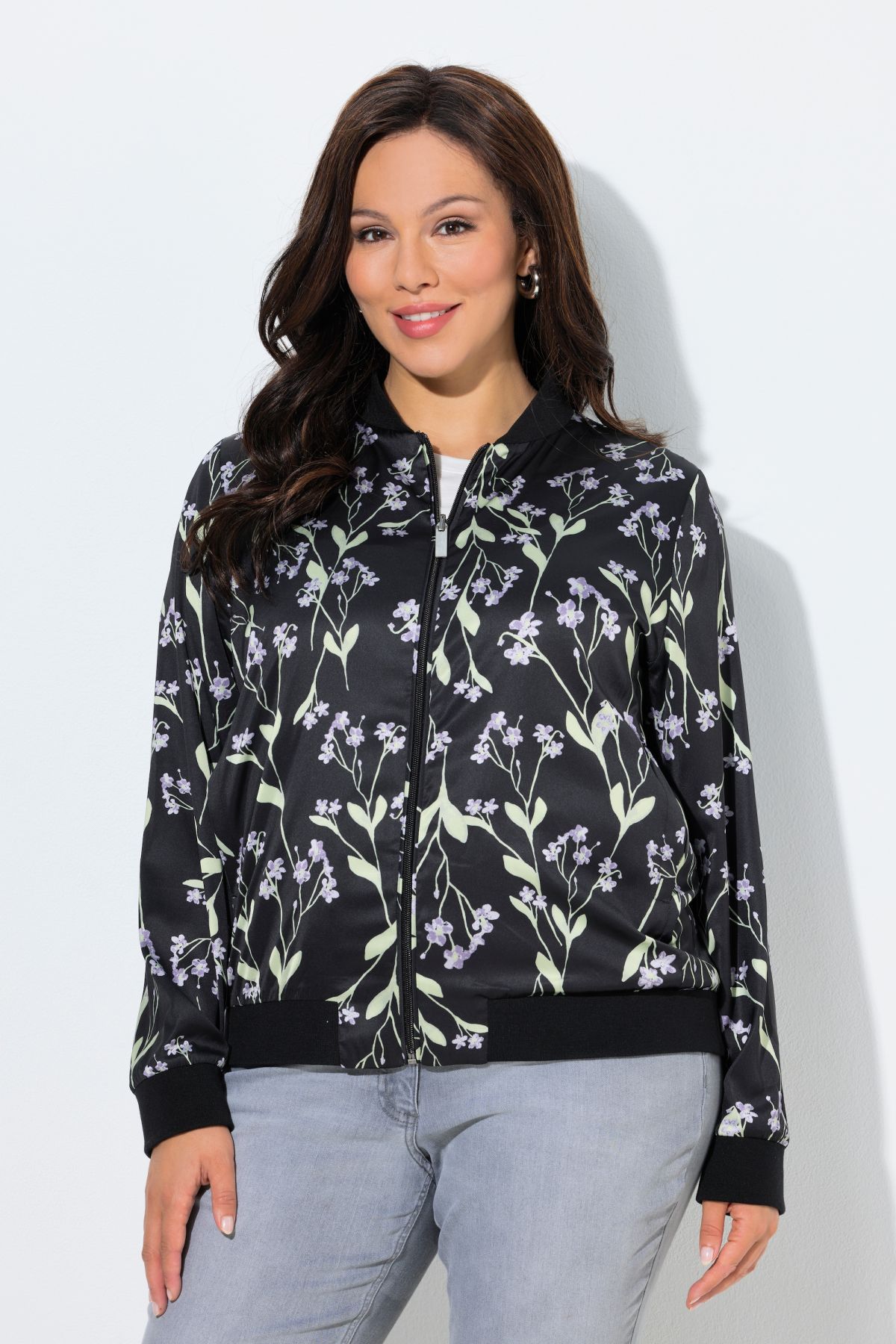 Blouson réversible, col Teddy et manches longues, fleurs/uni