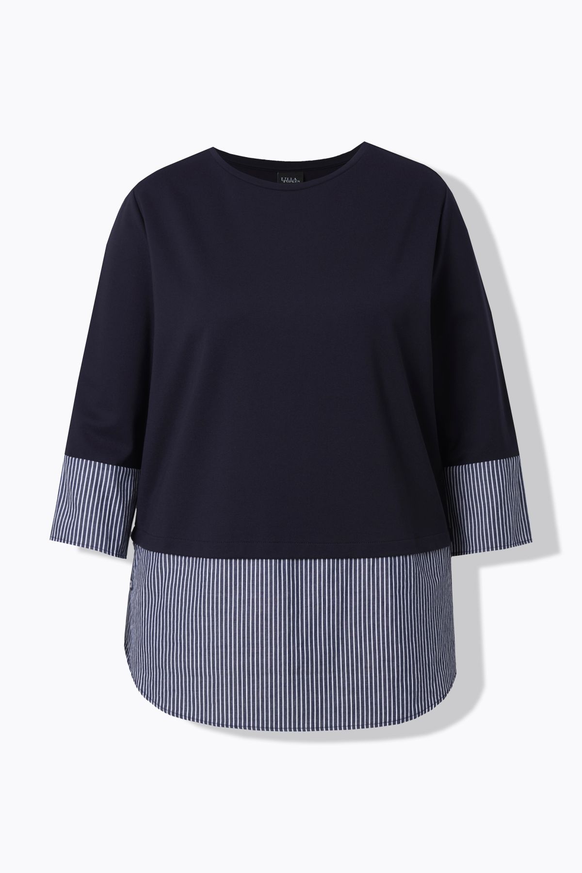 Sweat-shirt col rond et manches 3/4, faux empiècement chemisier