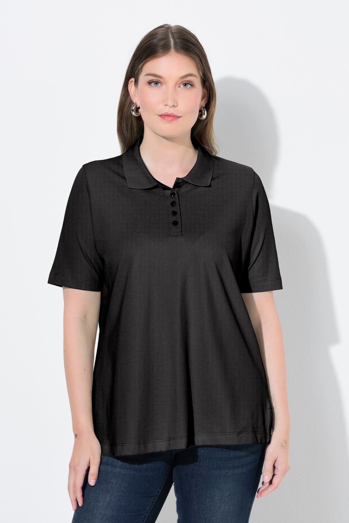 Patte de boutonnage un peu plus longue que la normale, Col polo sportif, Coupe droite et confortable, Fentes sur les côtés pour encore plus de confort, Pur coton