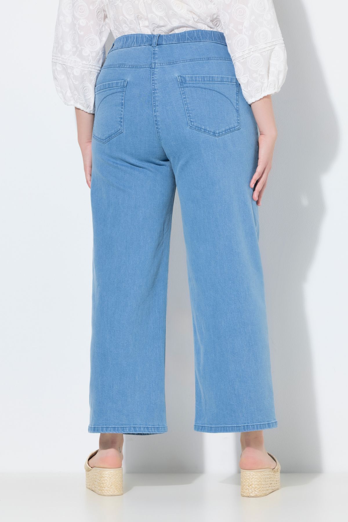 Jupe-culotte en jean de coton bio, jambe large et taille élastique