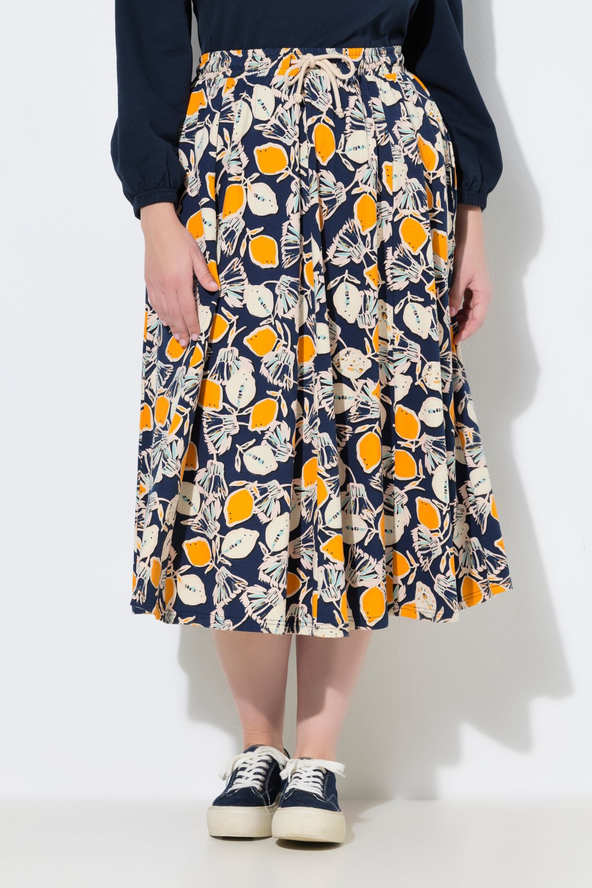 Jupe midi en coton bio motif citrons, taille élastique et poches