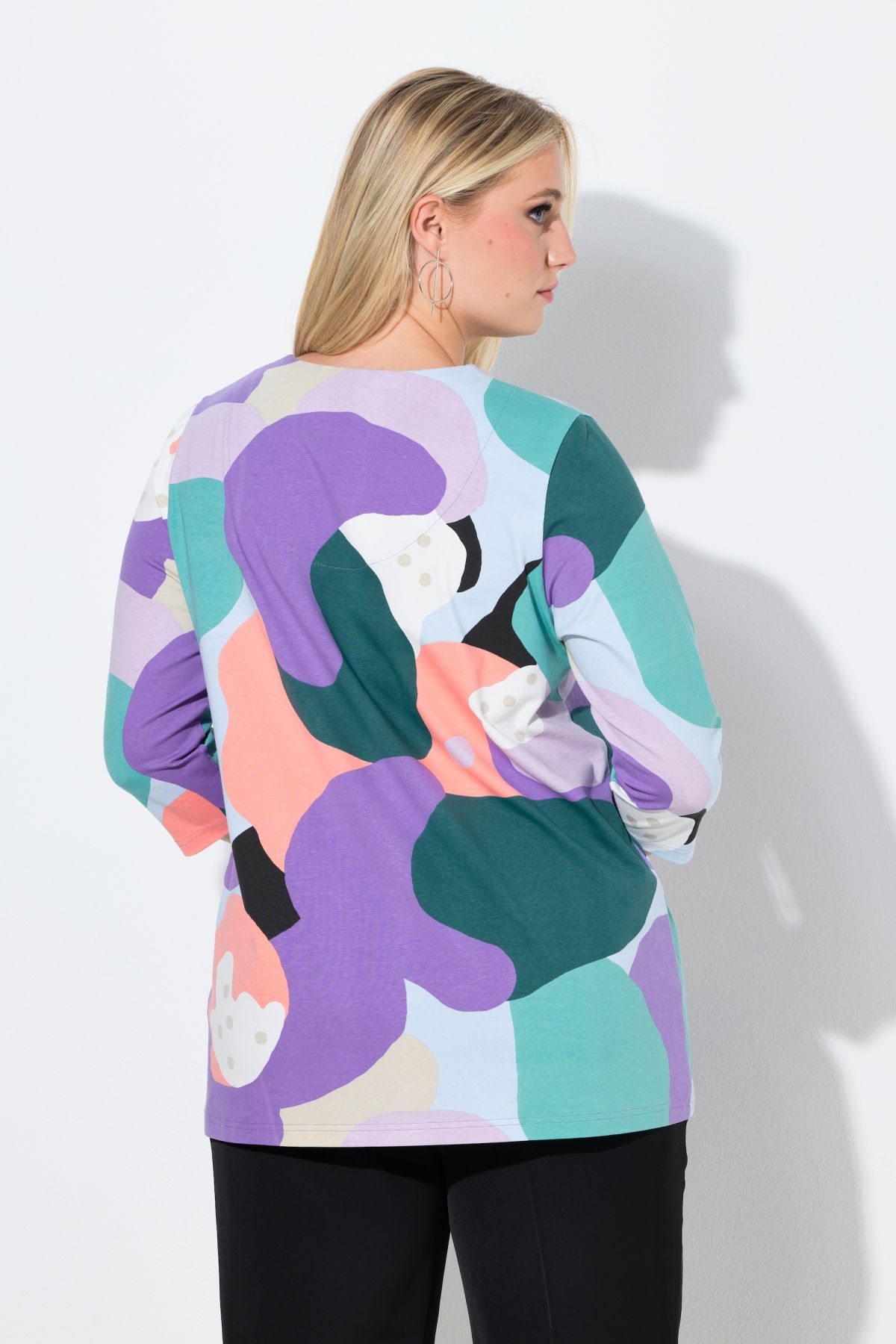 Jersey doux et confortable, motif graphique, Col tunisien très féminin, Coupe évasée confortable, Manches 3/4, Coton naturel enrichi en élasthanne, Long. selon taille env. 72-76 cm.