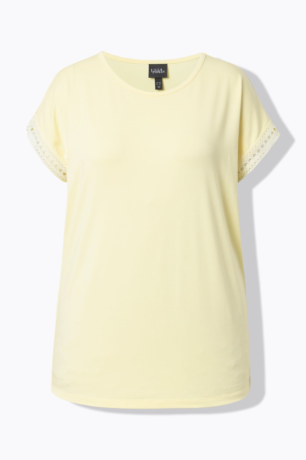 T-shirt avec dentelle ajourée, décolleté rond et manches courtes, coupe Classic Fit