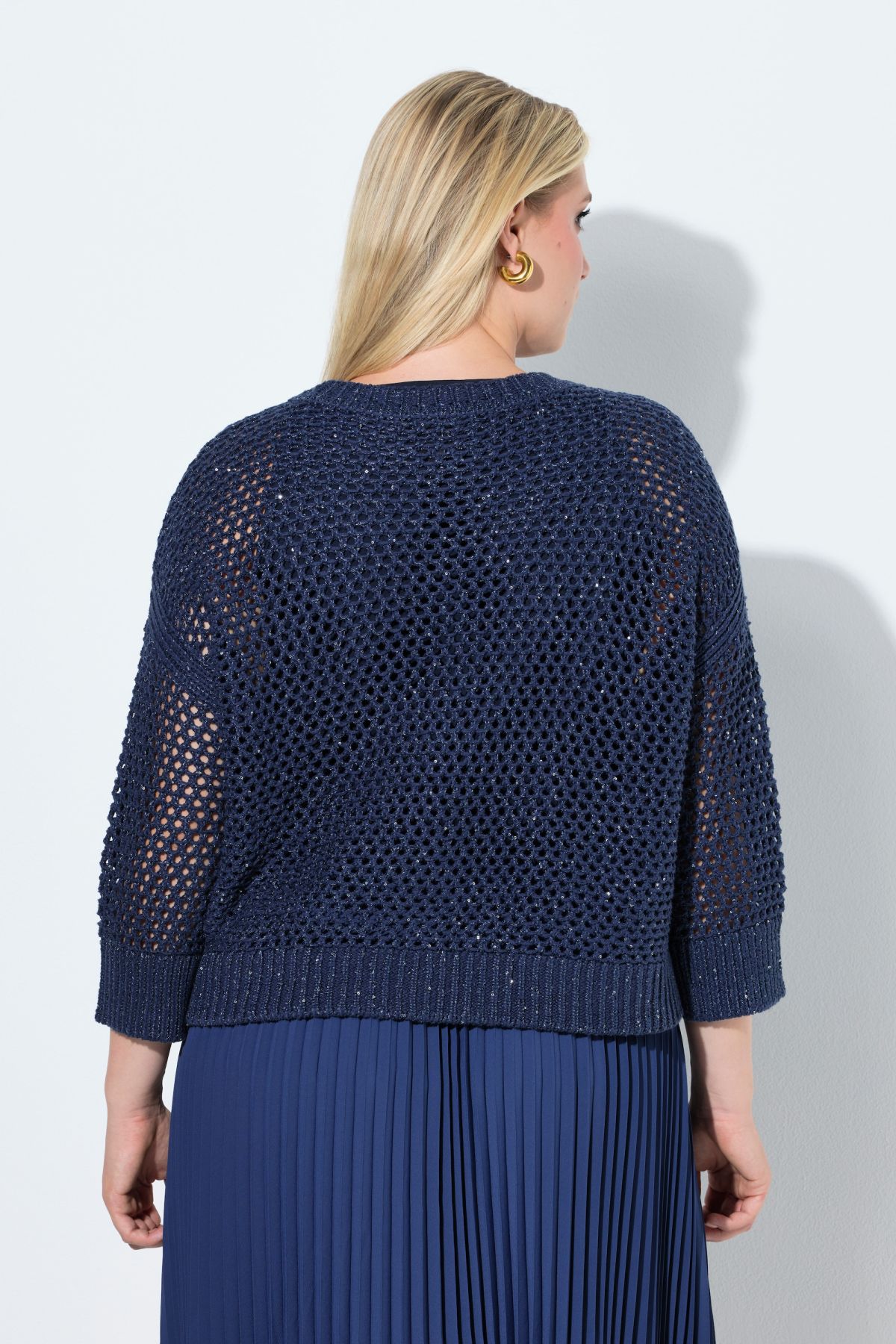 Pull en maille scintillante, modèle oversize, col rond et manches 3/4
