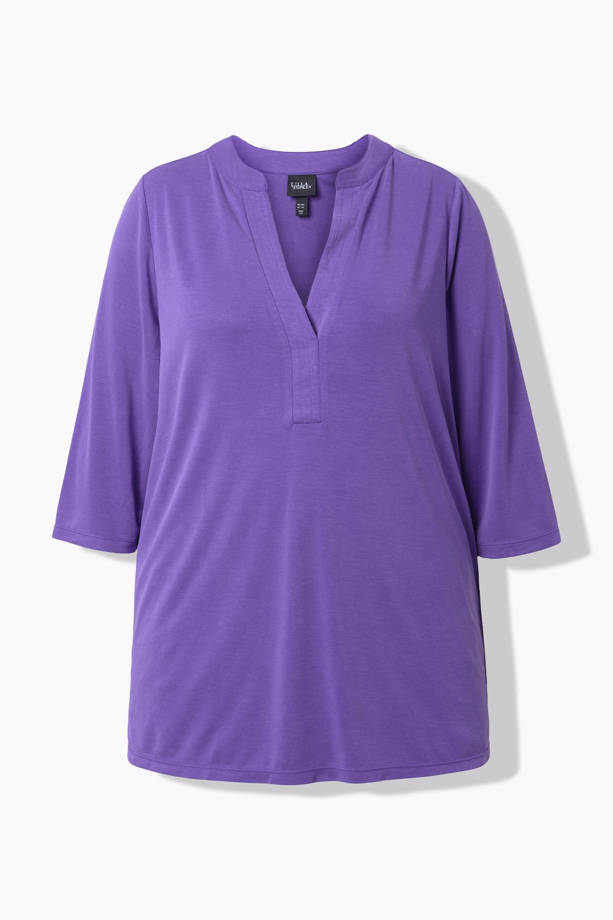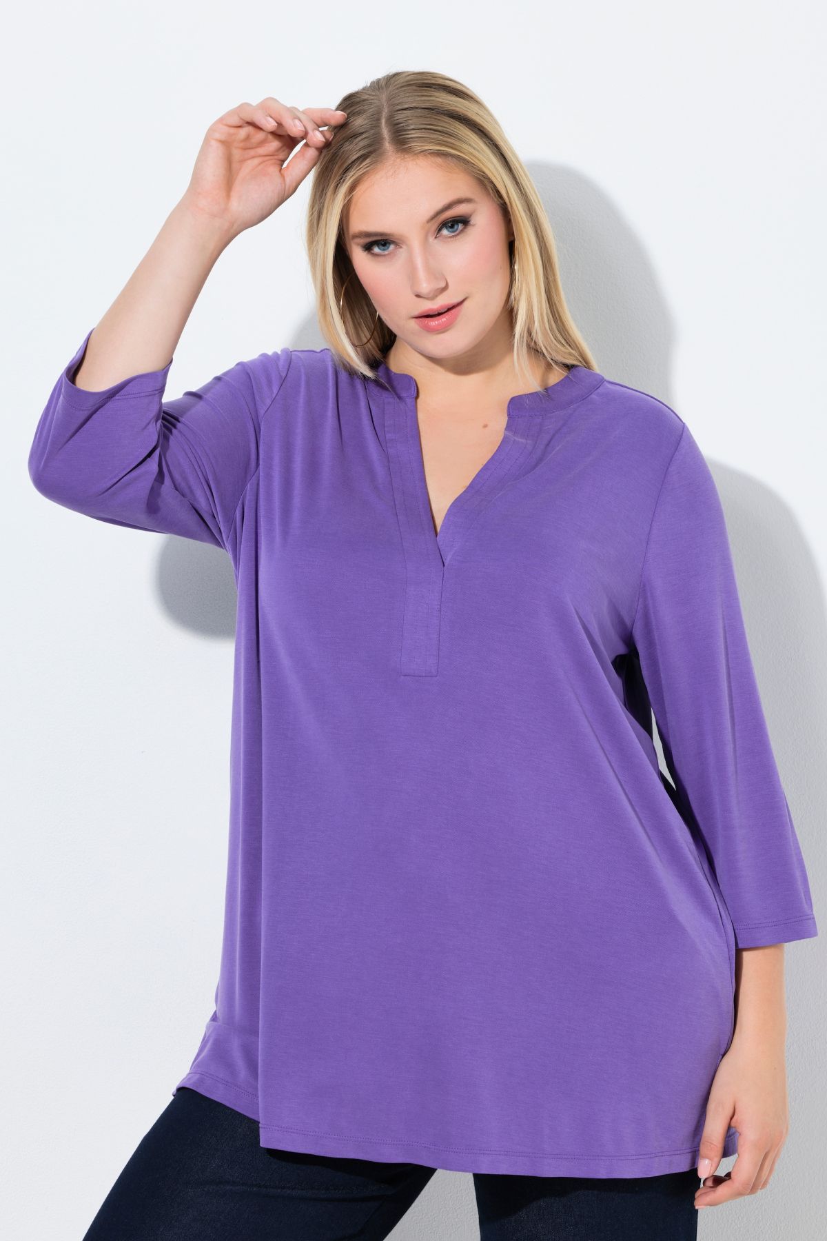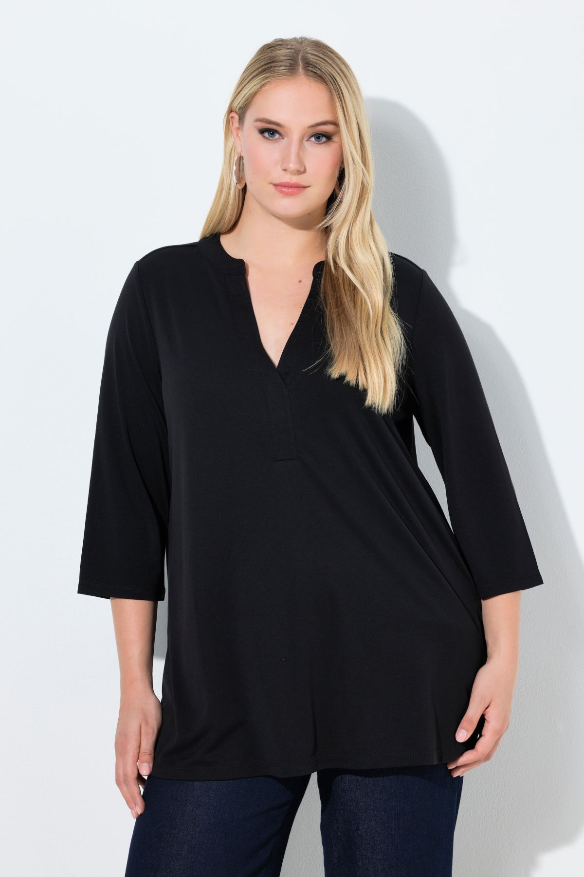 T-shirt tunique, coupe évasée, col tunisien et manches 3/4