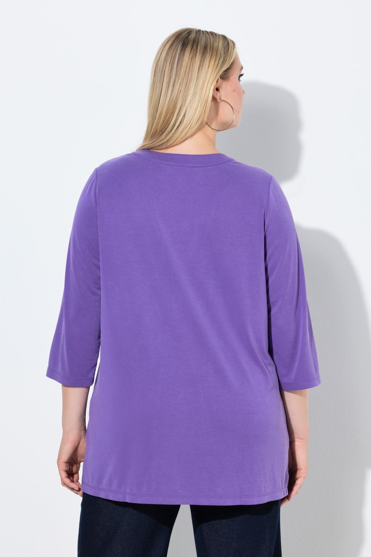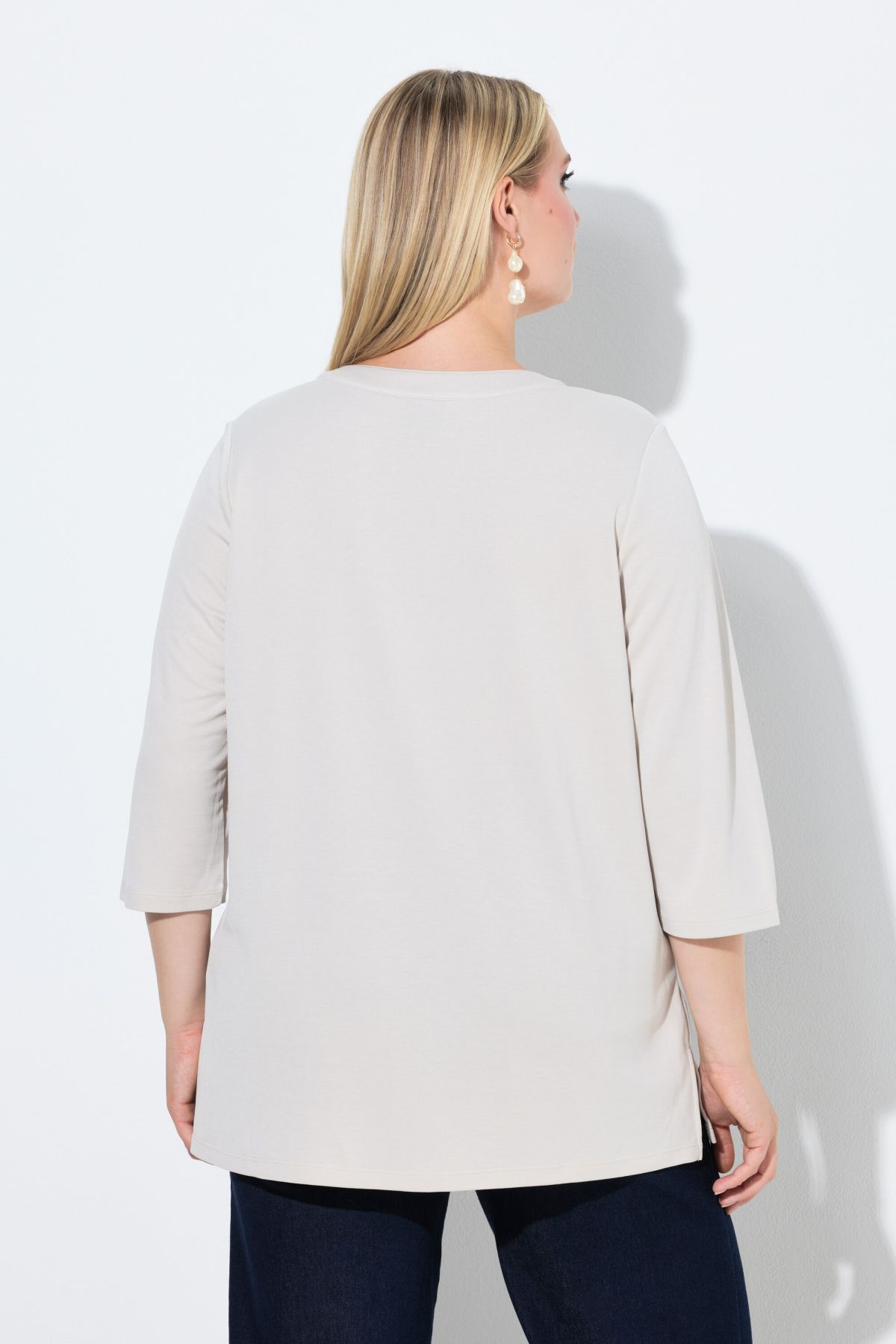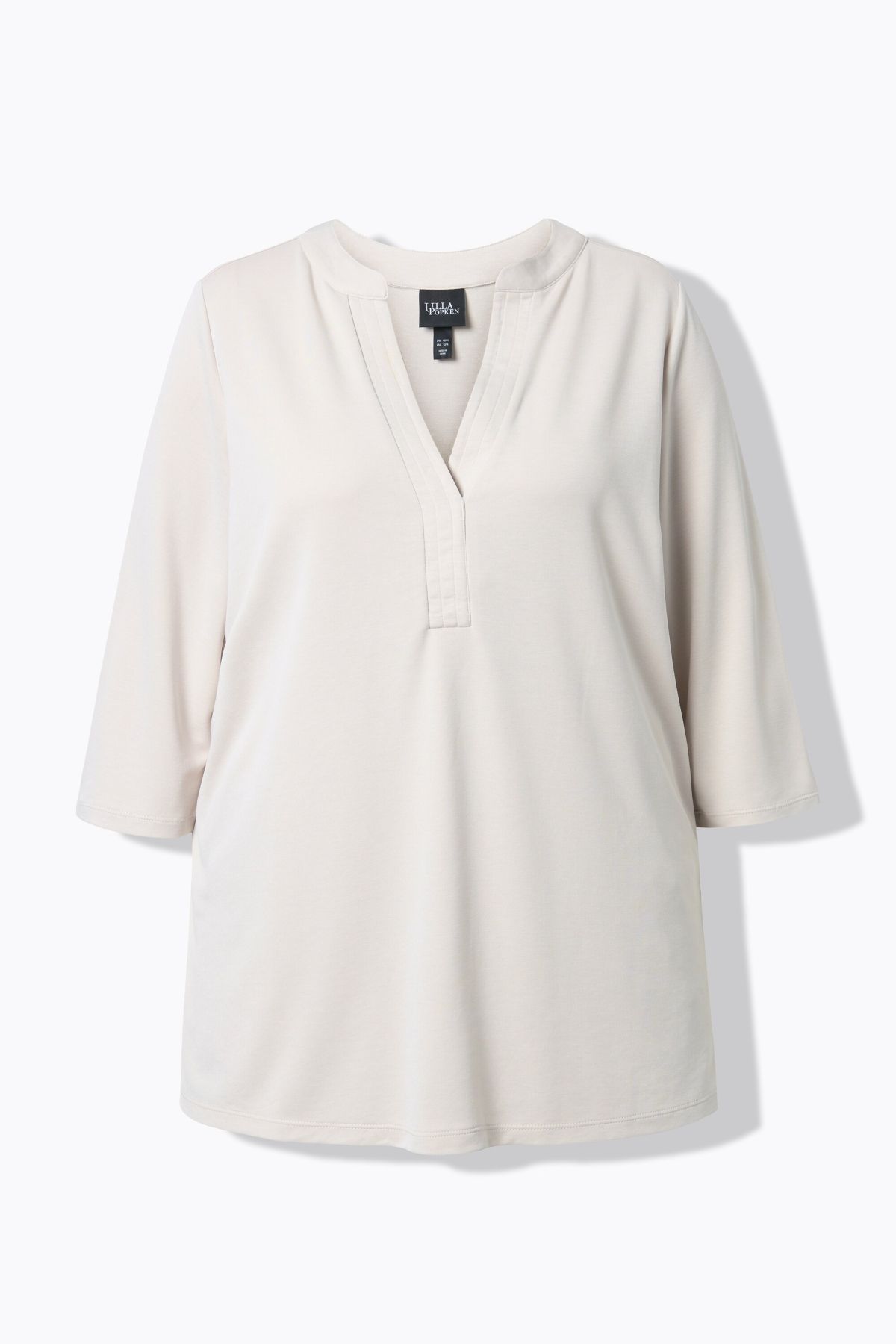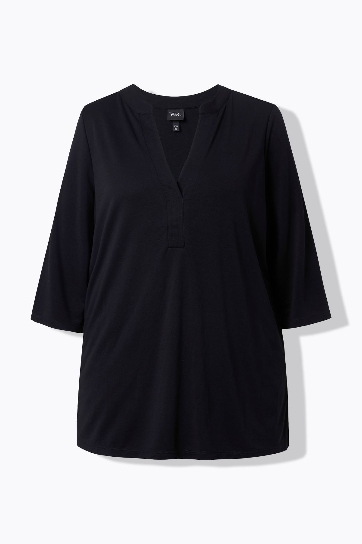 T-shirt tunique, coupe évasée, col tunisien et manches 3/4