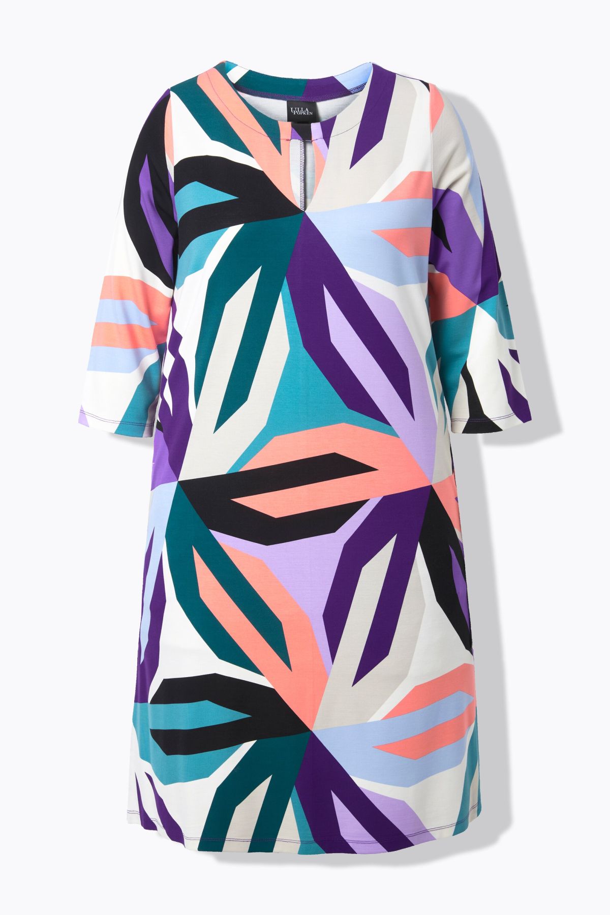 Motif floral abstrait, Décolleté rond, Coupe courte confortable, poches latérales réservées dans la couture, Manches 3/4, Jersey point de Rome de grande qualité, Long. env. 100-104 cm.