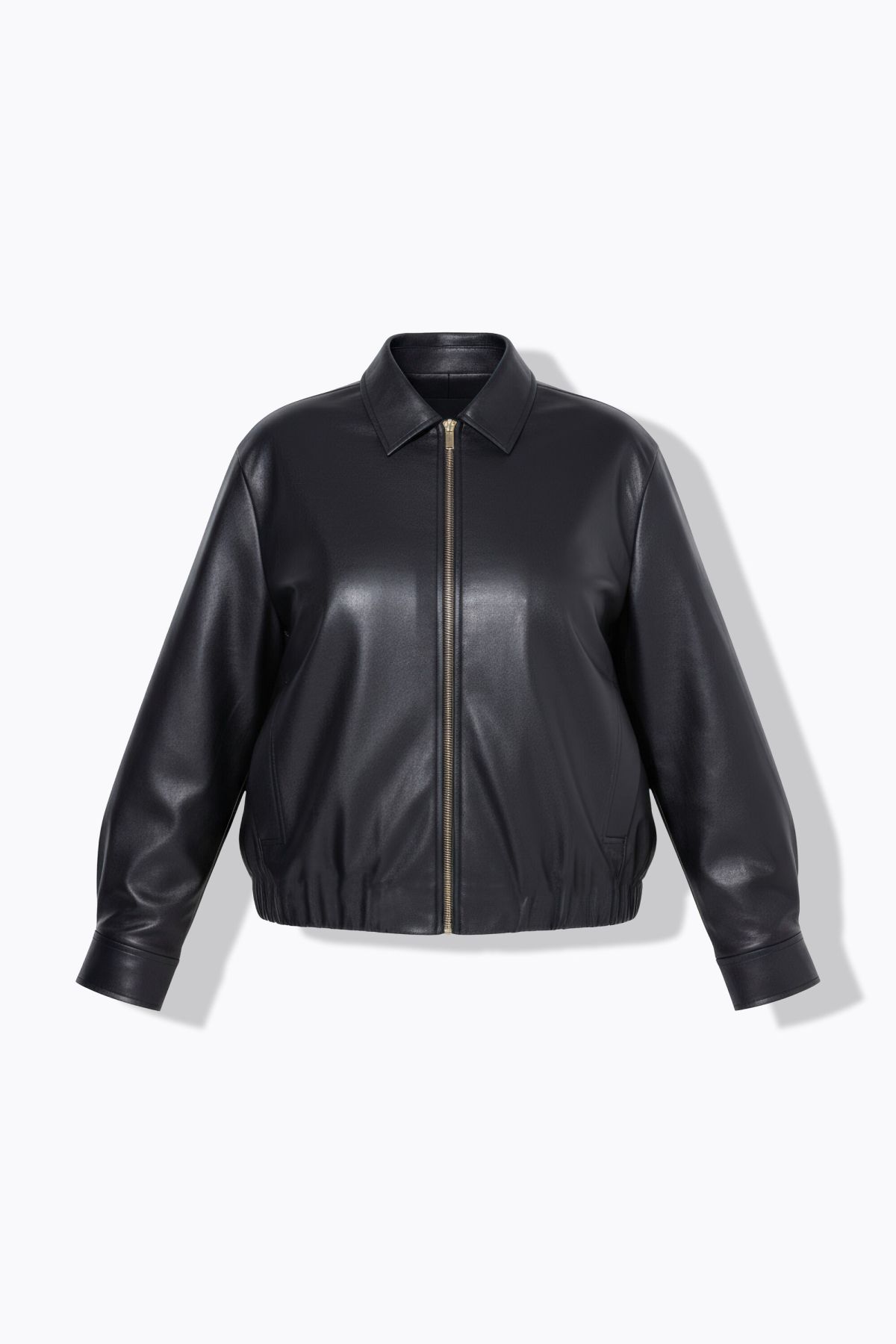 Coupe Boxy Oversize Shape, Simili souple et confortable, Col chemise et fermeture zippée, Manches longues avec poignets, Base élastique et doublure intégrale, Long. env. 64-72 cm.