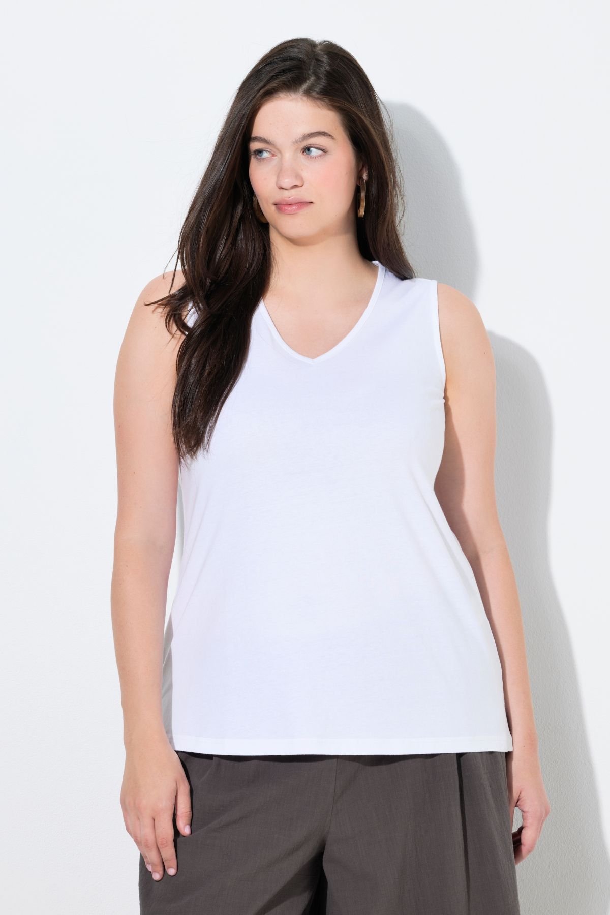 Débardeur en coton bio, modèle sans manches avec col en V, coupe Classic Fit