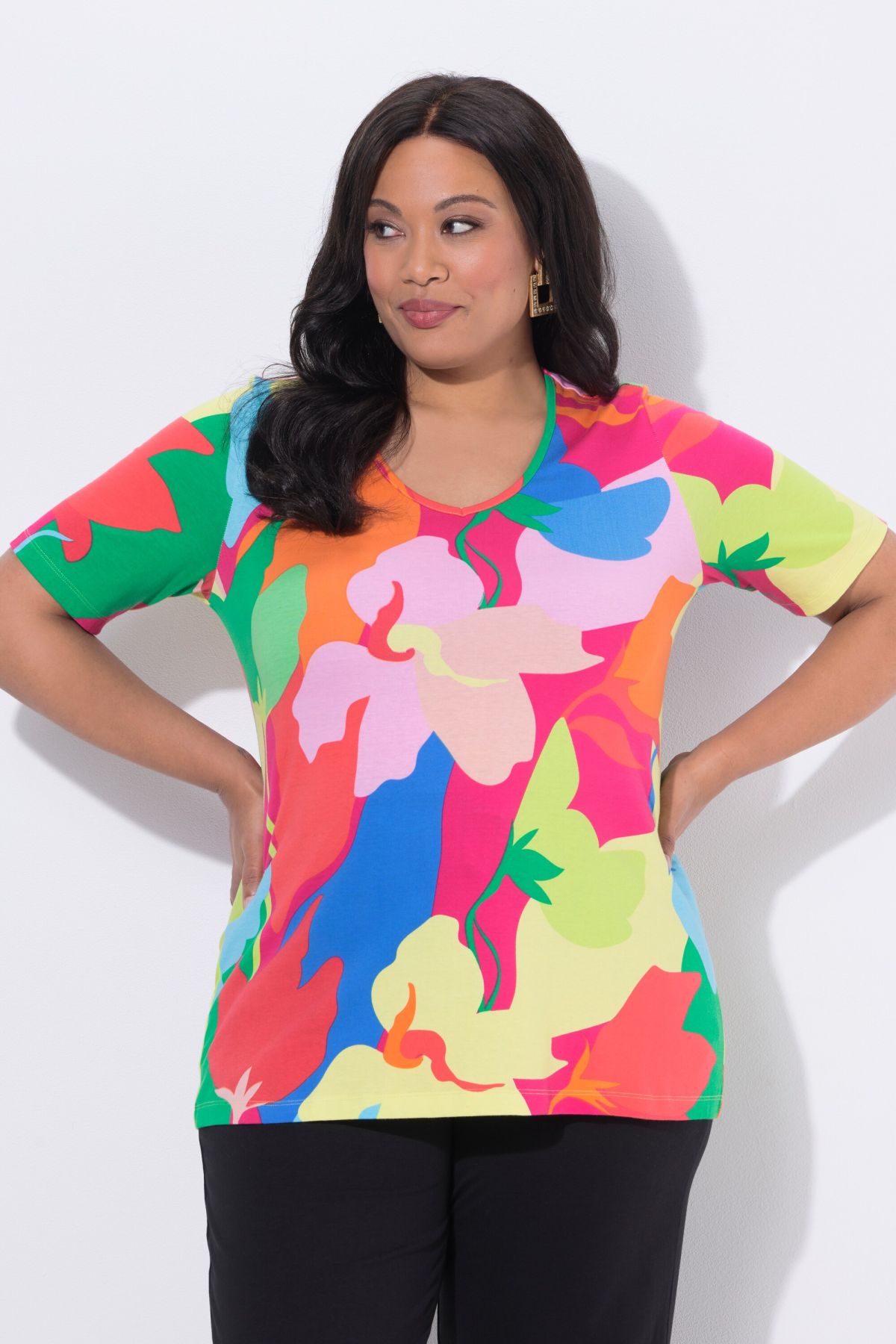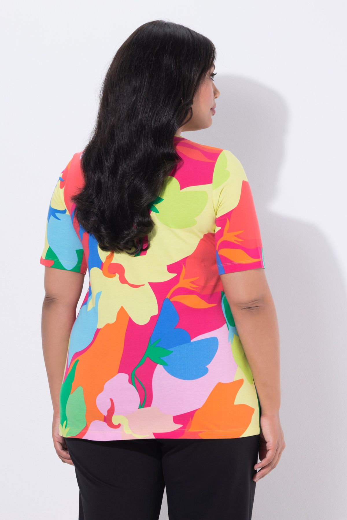Imprimé tendance, Col rond, Coupe évasée, base ample et confortable, Manches courtes, Pur coton, Long. selon taille env. 71-75 cm.
