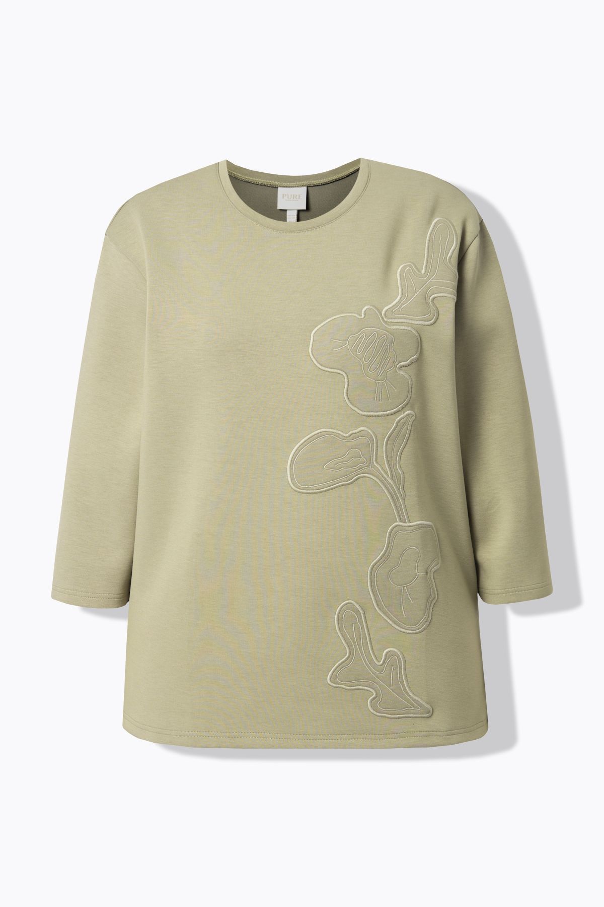 Sweat-shirt col rond et manches 3/4, applications de fleurs brodées