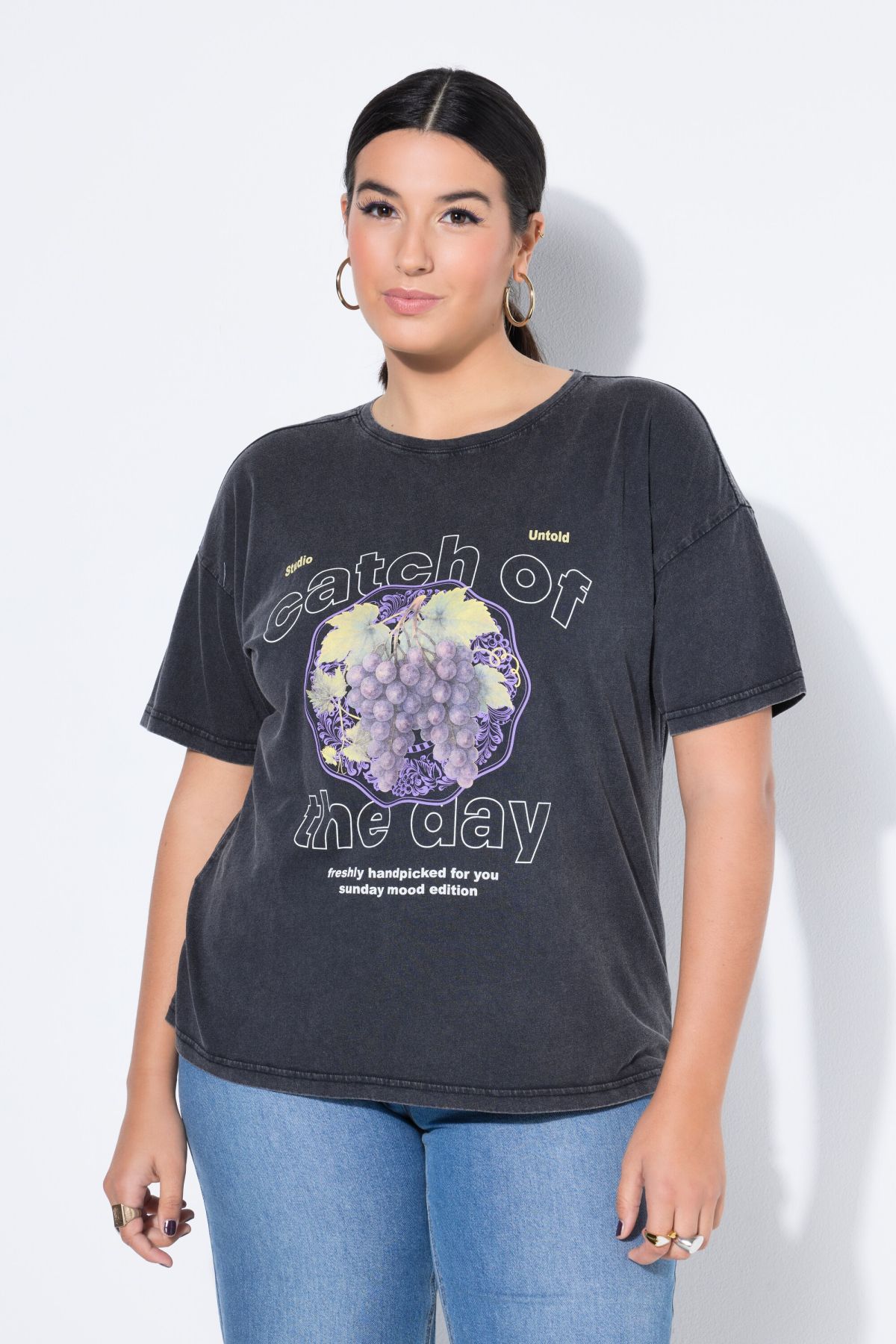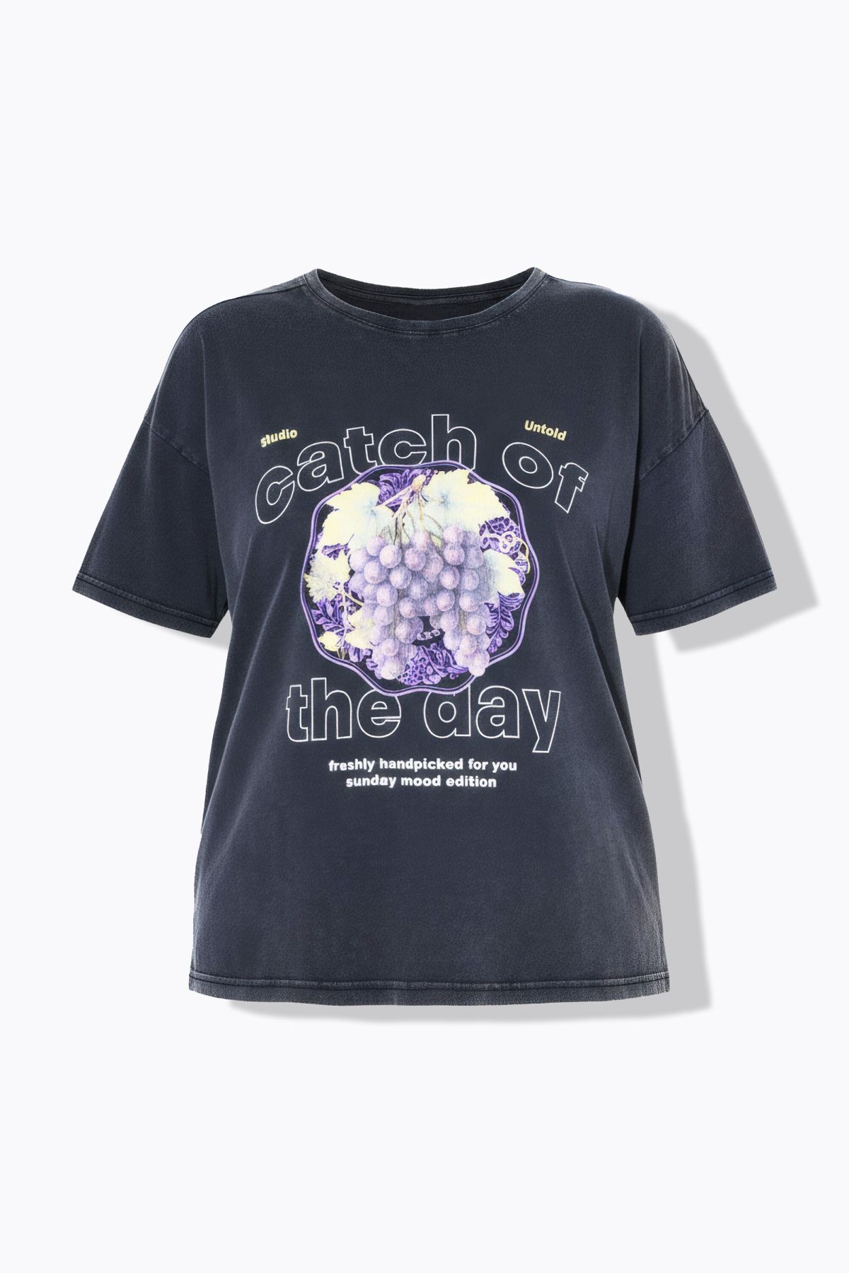 T-shirt manches courtes, imprimé raisins et style vintage