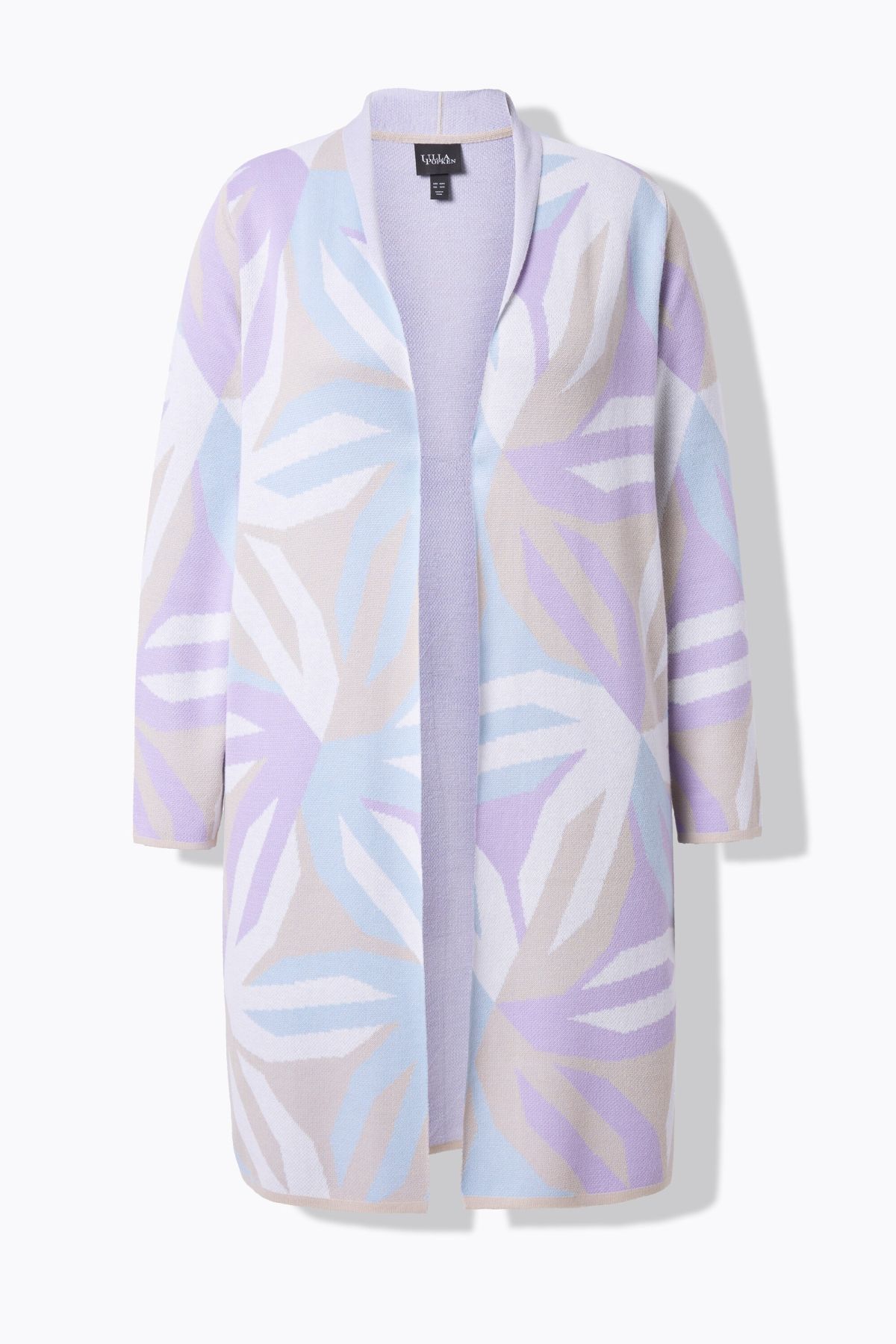 Cardigan long motif graphique, col montant et manches longues