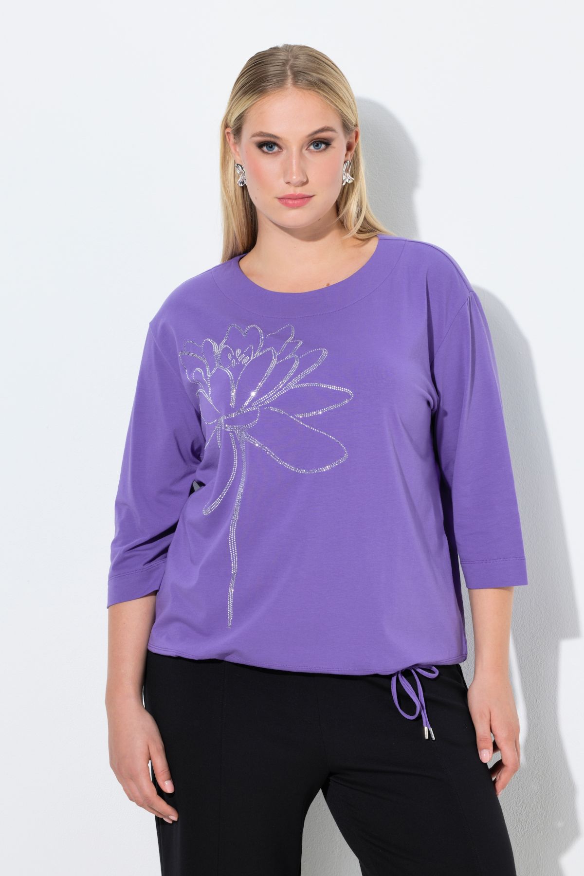 Motif grande fleur en petits strass scintillants, Col rond, Épaules basses, Cordon coulissant sous tunnel à la base, Coton naturel enrichi en élasthanne, Long. selon taille env. 64-72 cm.