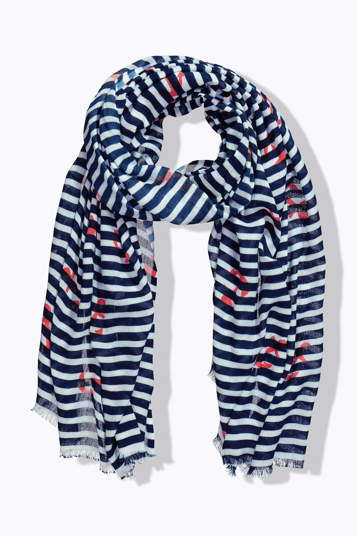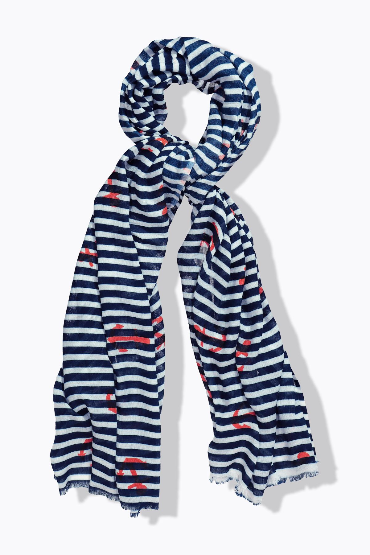 Rayures tendance, Motif ancres de bateau, Viscose douce et confortable, au tombé fluide, Idéal pour apporter la touche finale à vos tenues, Dimensions env. 180 cm.
