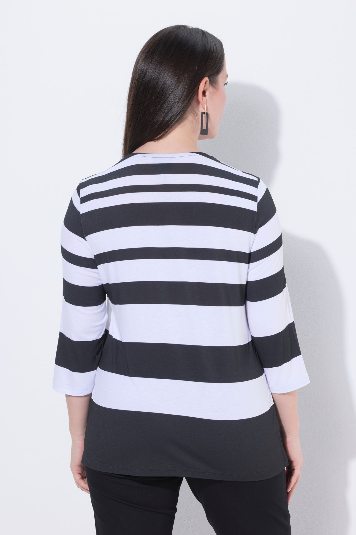 T-shirt à rayures, col rond et manches 3/4, buste doublé