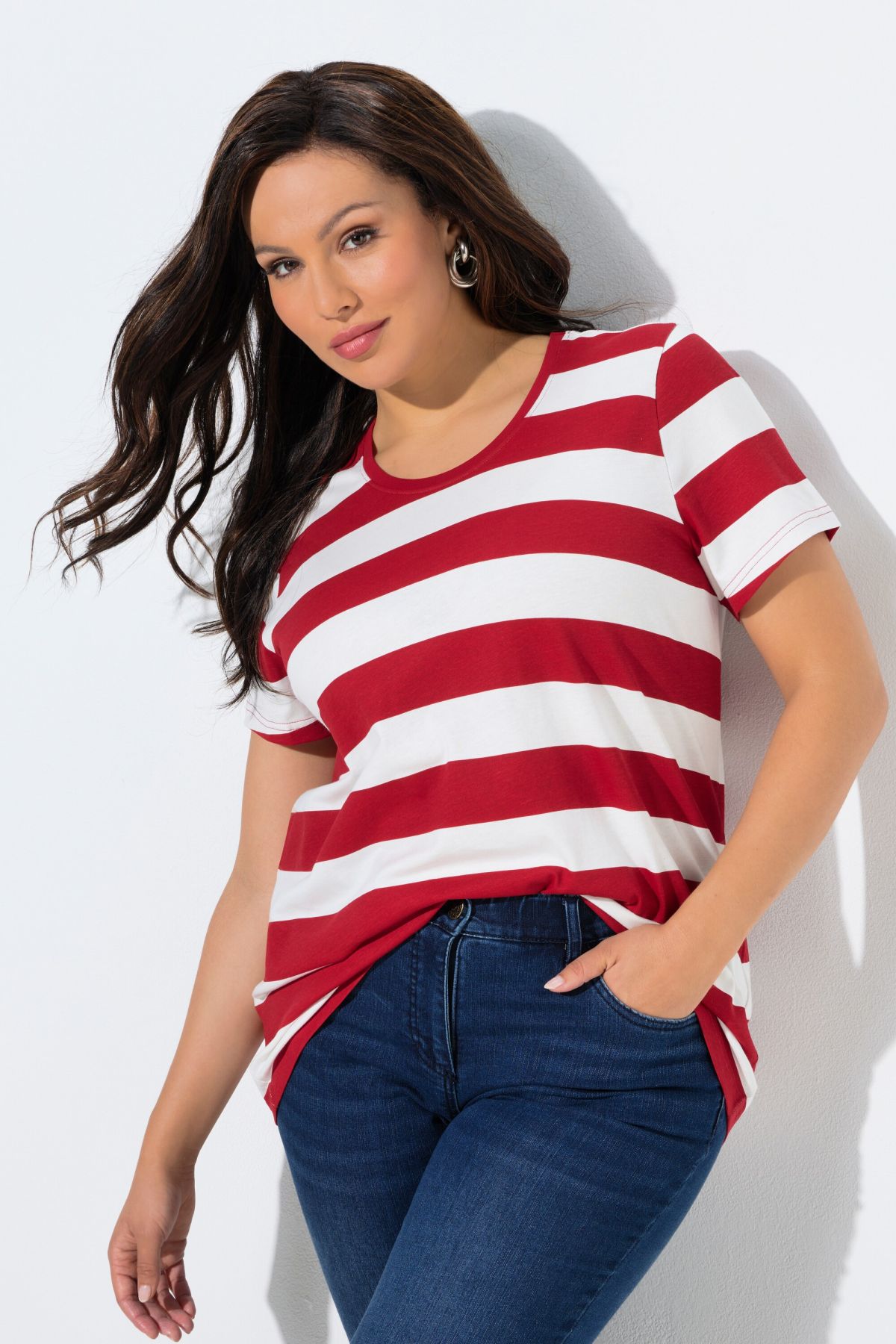 T-shirt rayé, coupe Classic Fit, col rond et manches courtes